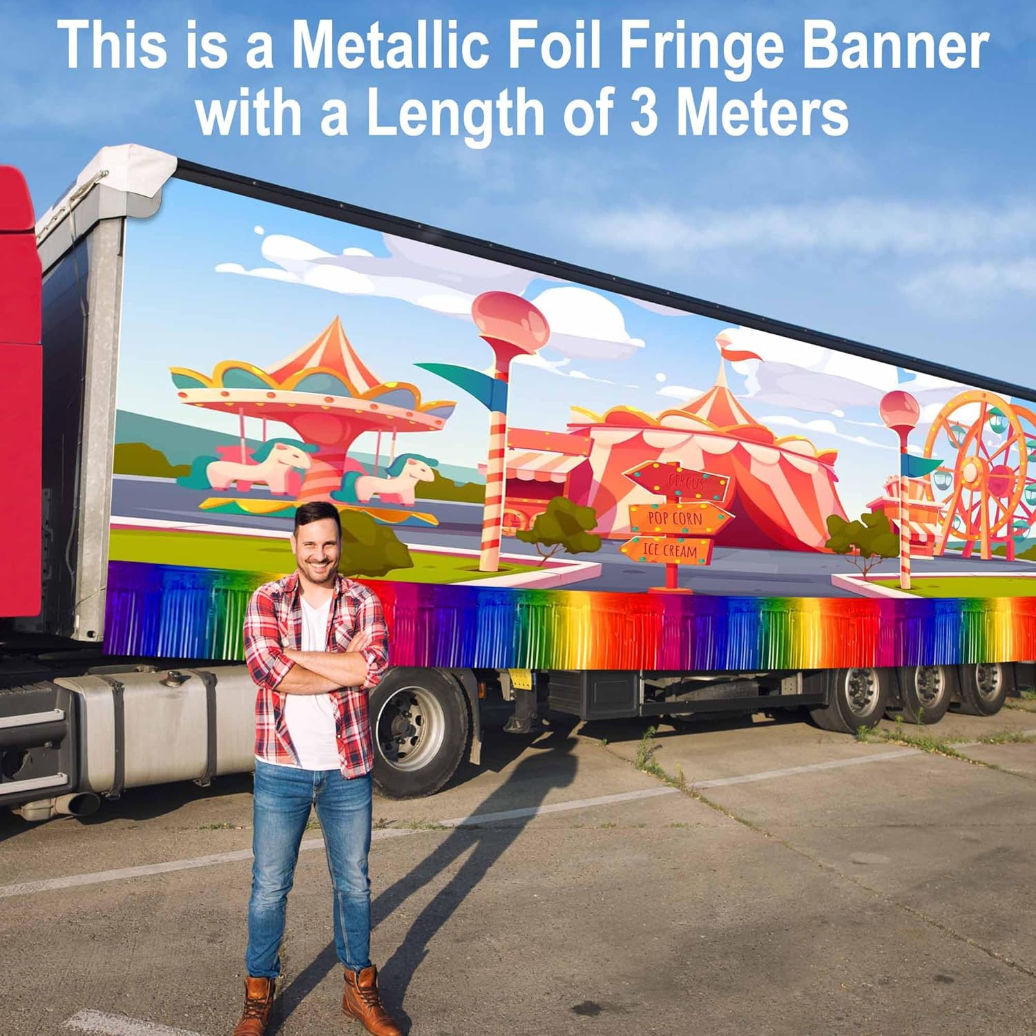 - Package Included: 6 Pack Foil Fringe Garland. Each pack tinsel foil fringe garland size is 12in x 10ft (30cm x 3m). Tinsel fringe garland is 10 feet long, the perfect length size covers a wide area. Made of metallic foil material, reflecting light and creating dazzling effects, adding luxury and visual impact to the party