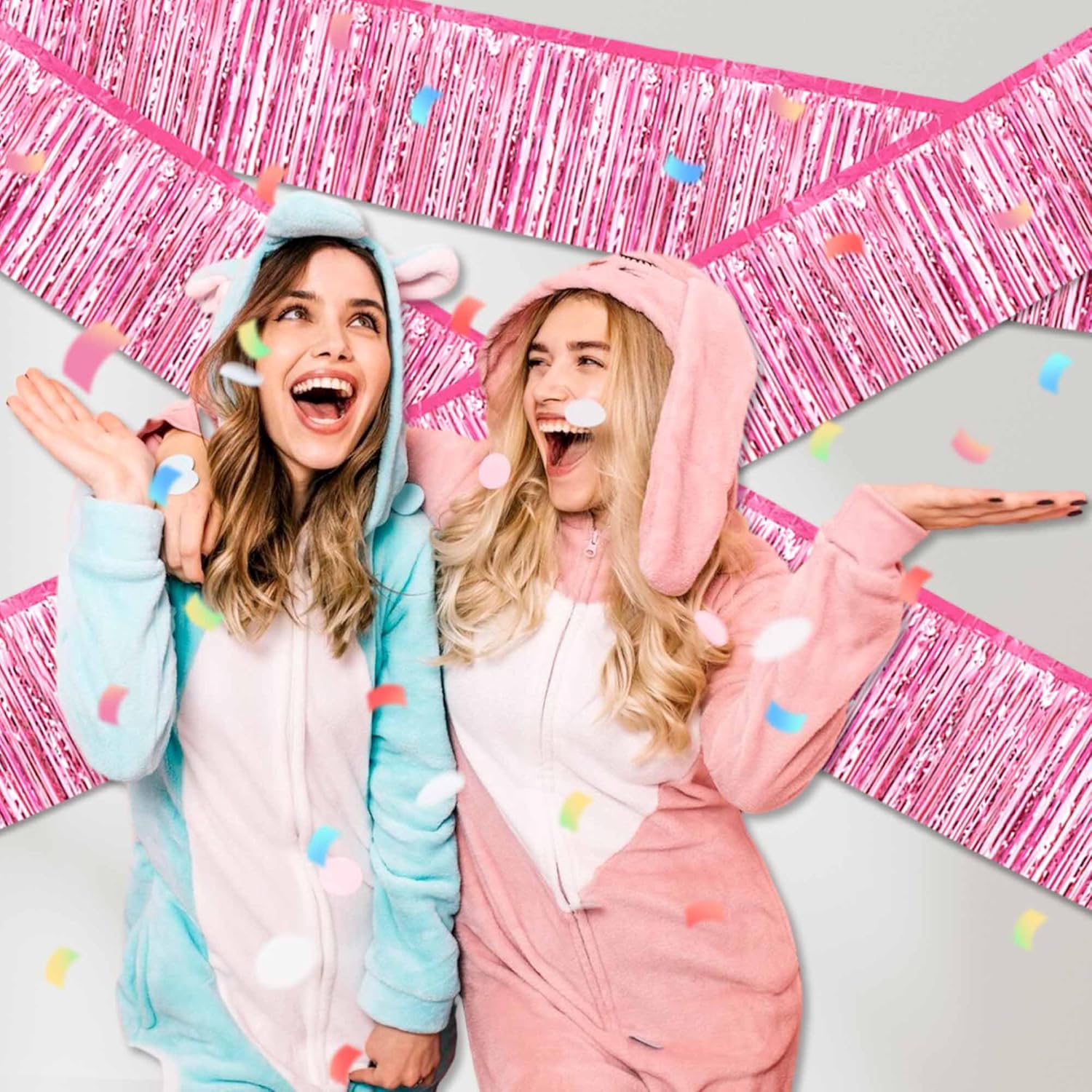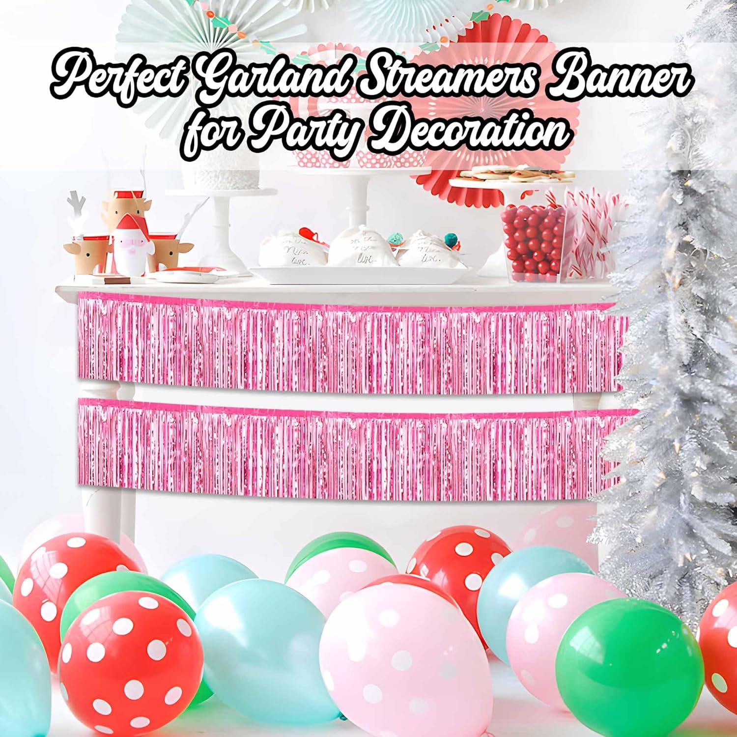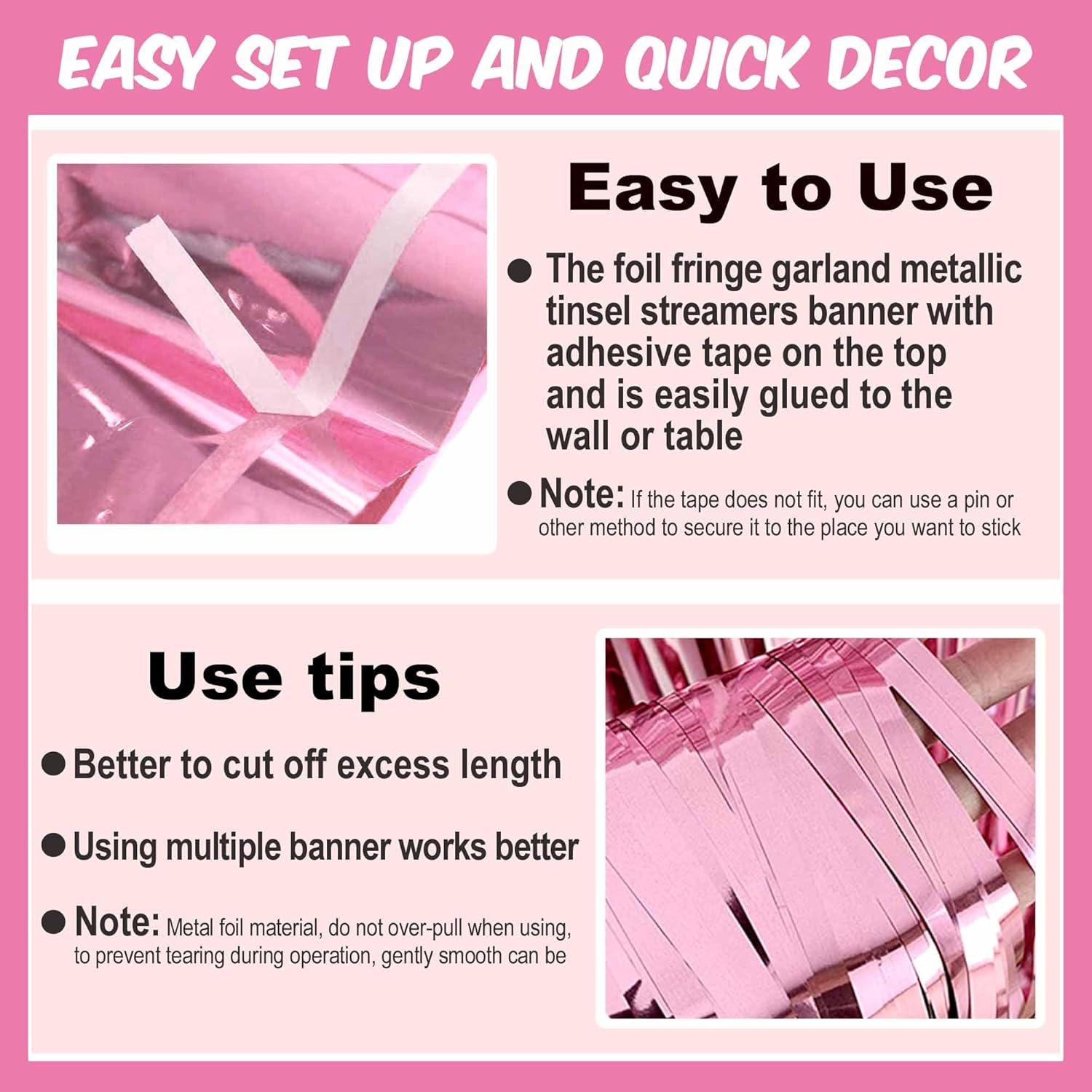 4 Pack 10 Ft Pink Foil Fringe Garland Metallic Streamers Tinsel Banner Wall Hanging Garland Backdrop for Parade Floats, Halloween, Christmas, Thanksgiving, New Year Party Decorations