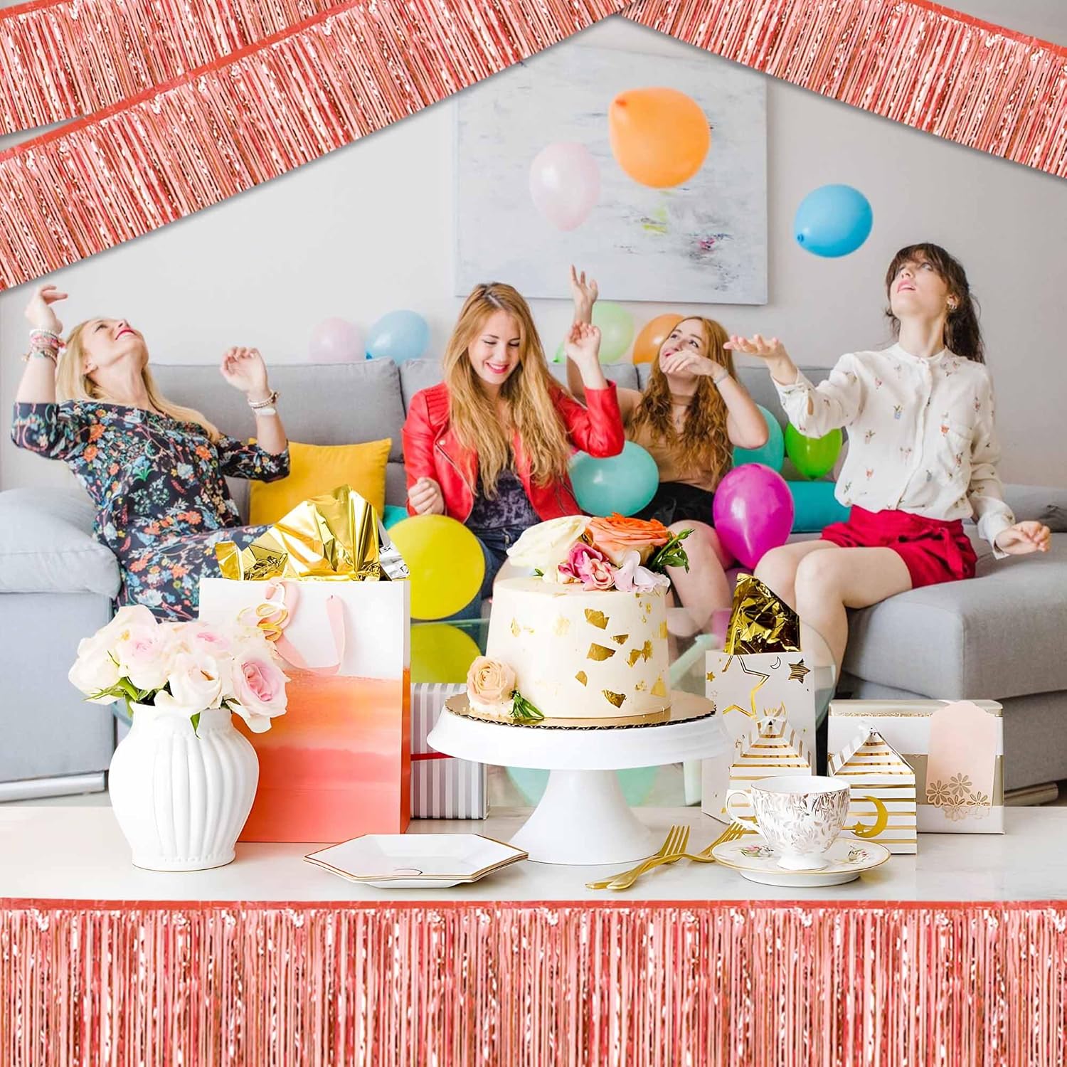 6 Pack 10 Ft Rose Gold Foil Fringe Garland Metallic Streamers Tinsel Banner Wall Hanging Garland Backdrop for Parade Floats, Halloween, Christmas, Thanksgiving, New Year Party Decorations