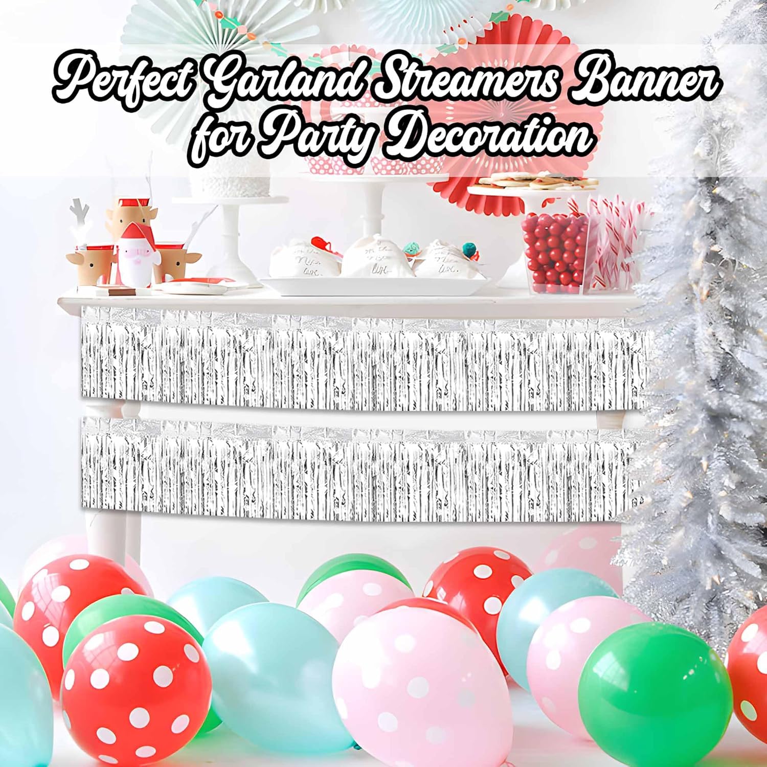 4 Pack 10 Ft Silver Foil Fringe Garland Metallic Streamers Tinsel Banner Wall Hanging Garland Backdrop for Parade Floats, Halloween, Christmas, Thanksgiving, New Year Party Decorations