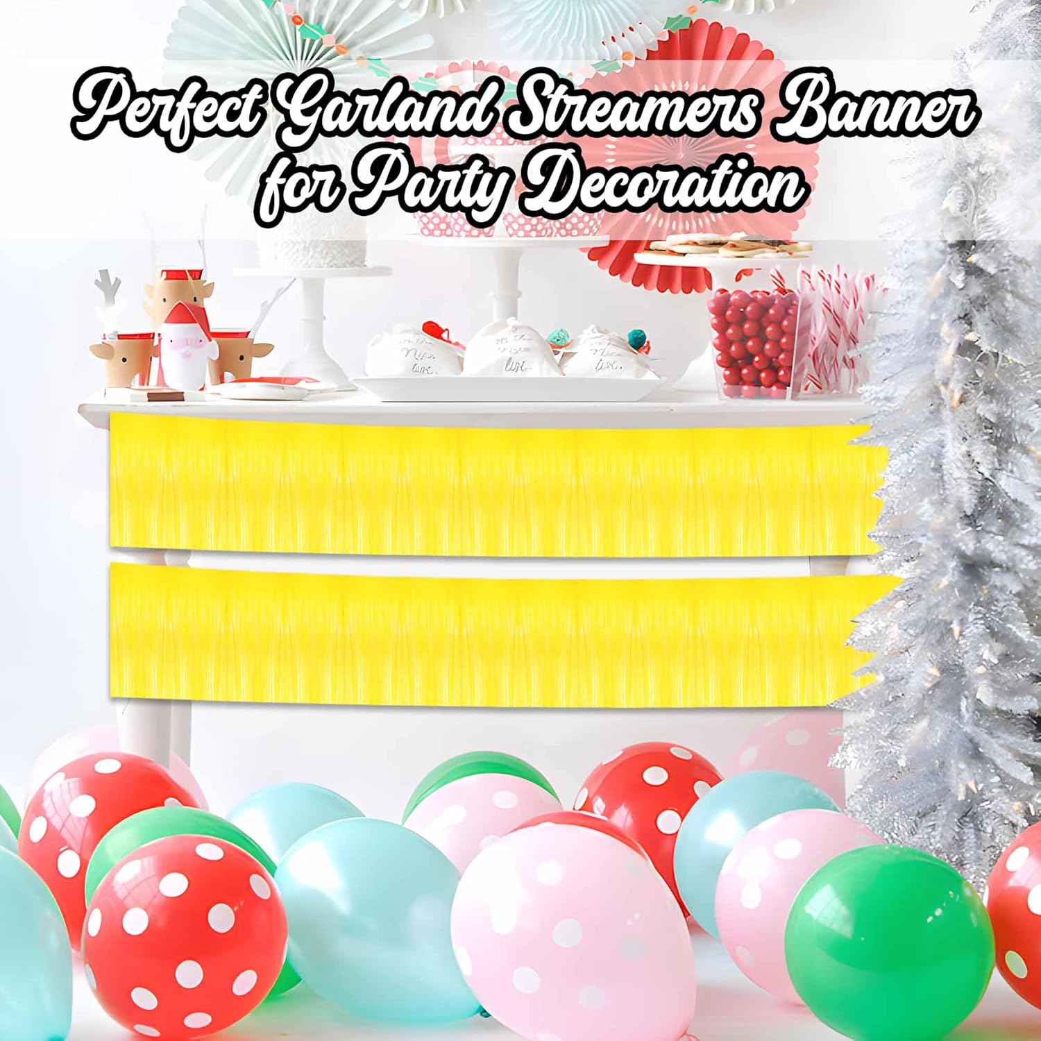 4 Pack 10 Ft Macaron Yellow Foil Fringe Garland Metallic Streamers Tinsel Banner Wall Hanging Garland Backdrop for Parade Floats, Halloween, Christmas, Thanksgiving, New Year Party Decorations