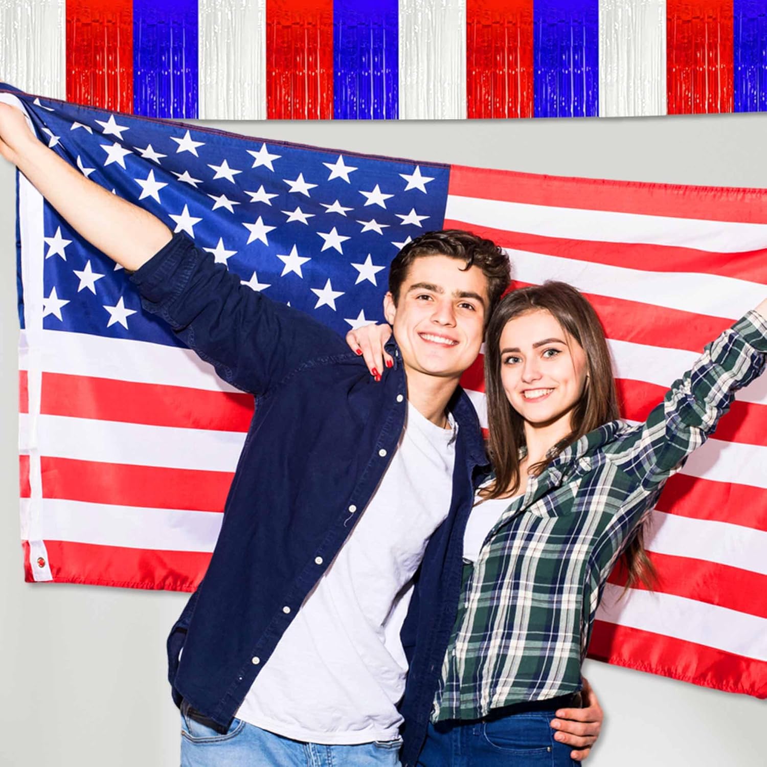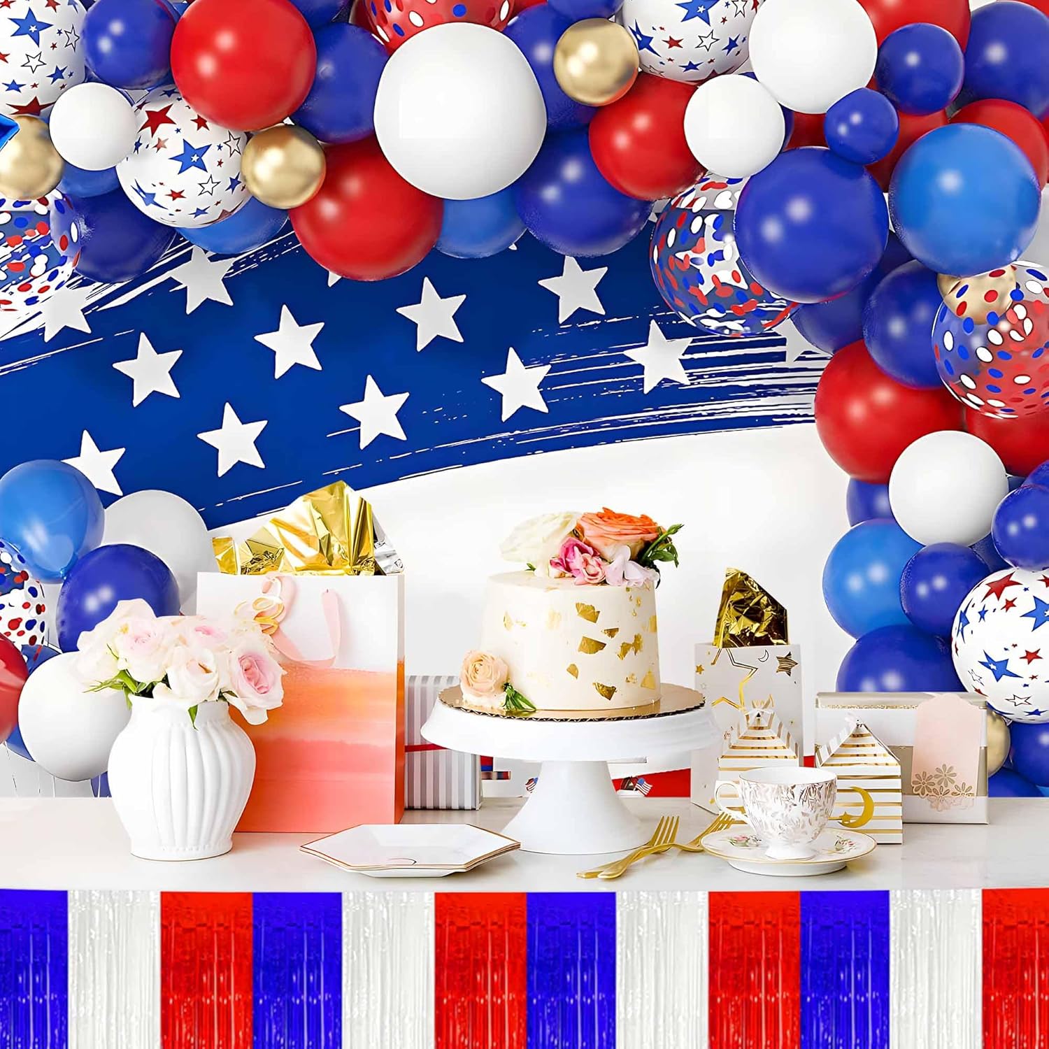 4 Pack 10 Ft White Blue Red Foil Fringe Garland Metallic Streamers Tinsel Banner Wall Hanging Garland Backdrop for Parade Floats, Halloween, Christmas, Thanksgiving, New Year Party Decorations