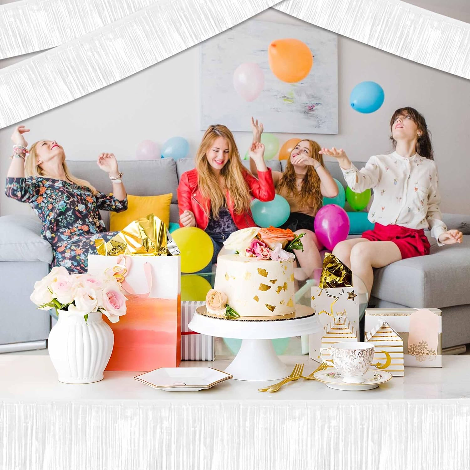 6 Pack 10 Ft Macaron White Foil Fringe Garland Metallic Streamers Tinsel Banner Wall Hanging Garland Backdrop for Parade Floats, Halloween, Christmas, Thanksgiving, New Year Party Decorations