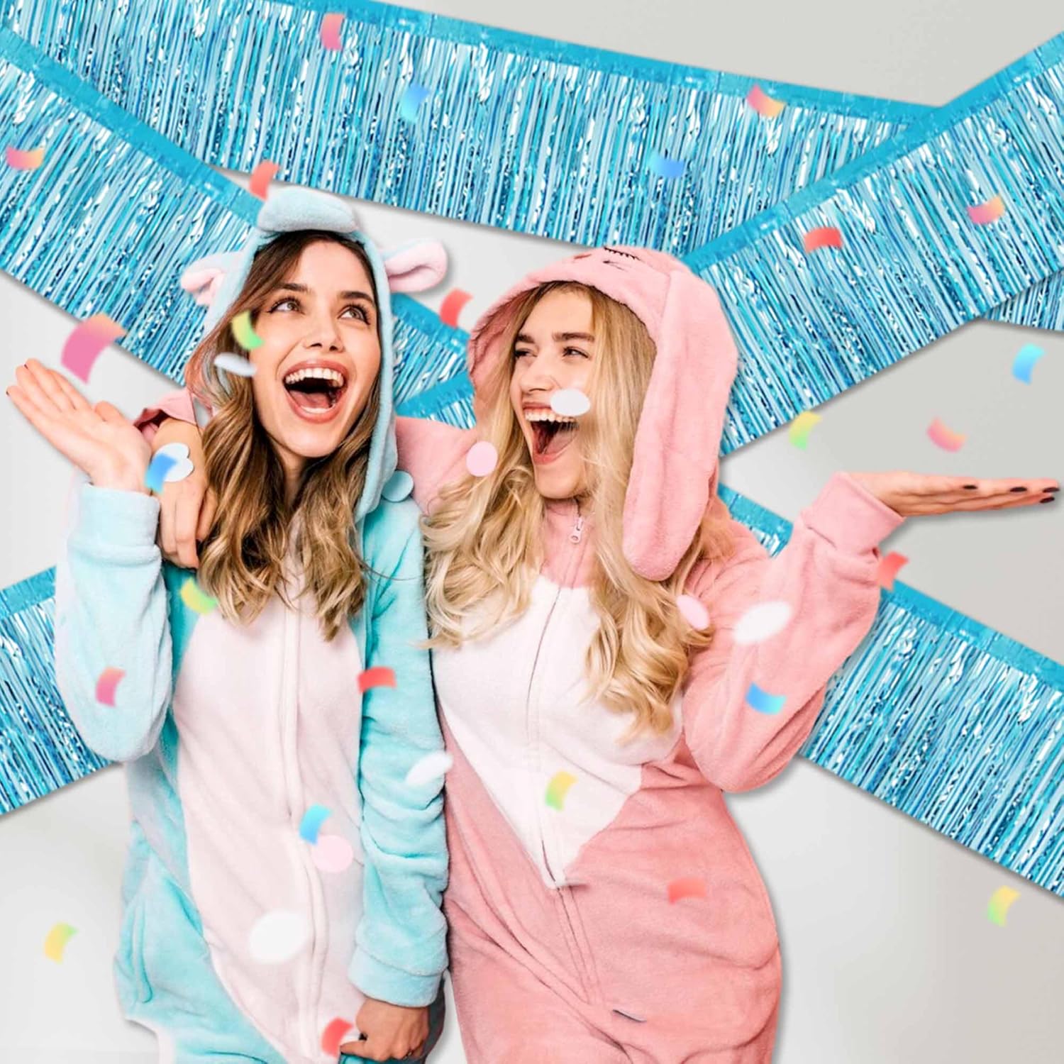 4 Pack 10 Ft Light Blue Foil Fringe Garland Metallic Streamers Tinsel Banner Wall Hanging Garland Backdrop for Parade Floats, Halloween, Christmas, Thanksgiving, New Year Party Decorations