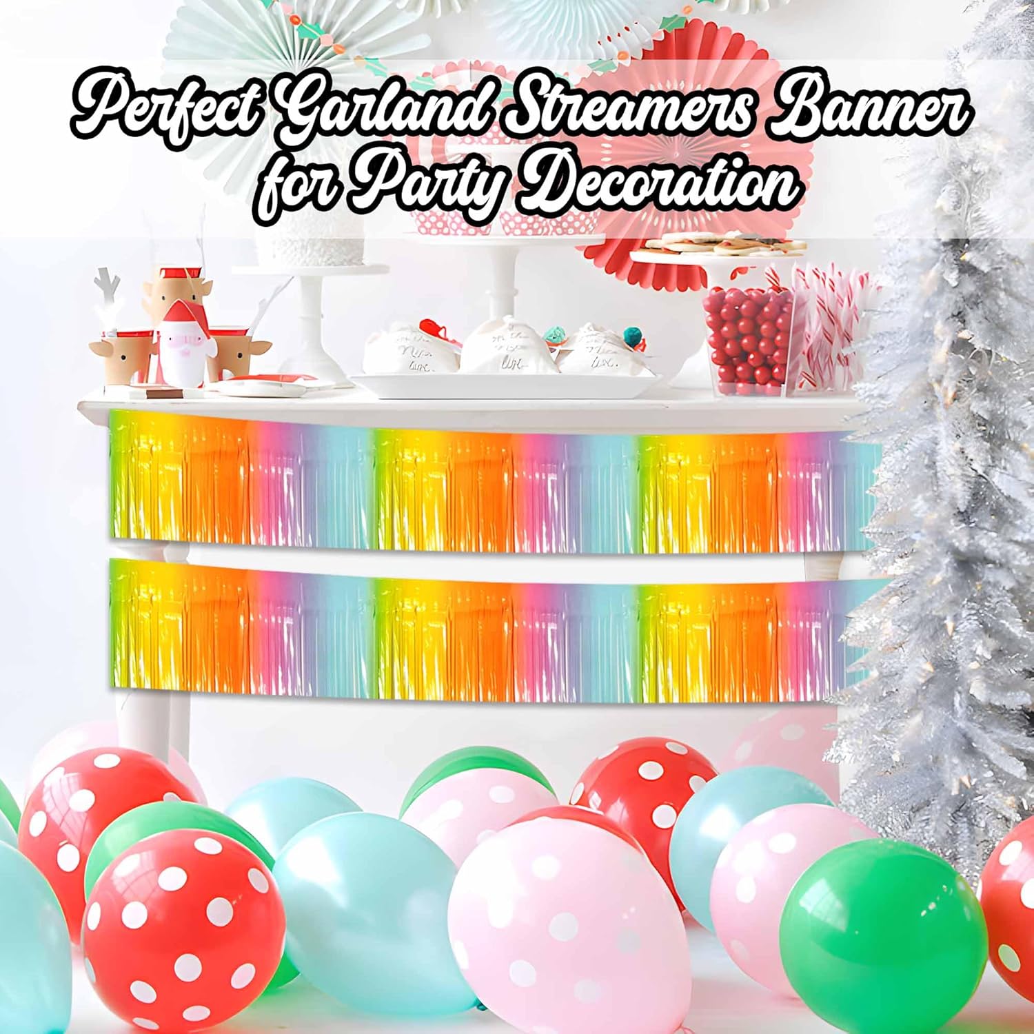 - Multi-Color Options: The foil fringe garland banner streamers is made of metallic foil, shiny and bright. This foil fringe garland banner streamers provide a variety of color options, to meet different party needs. Tinsel foil fringe garland banner streamers would make your party more impressive