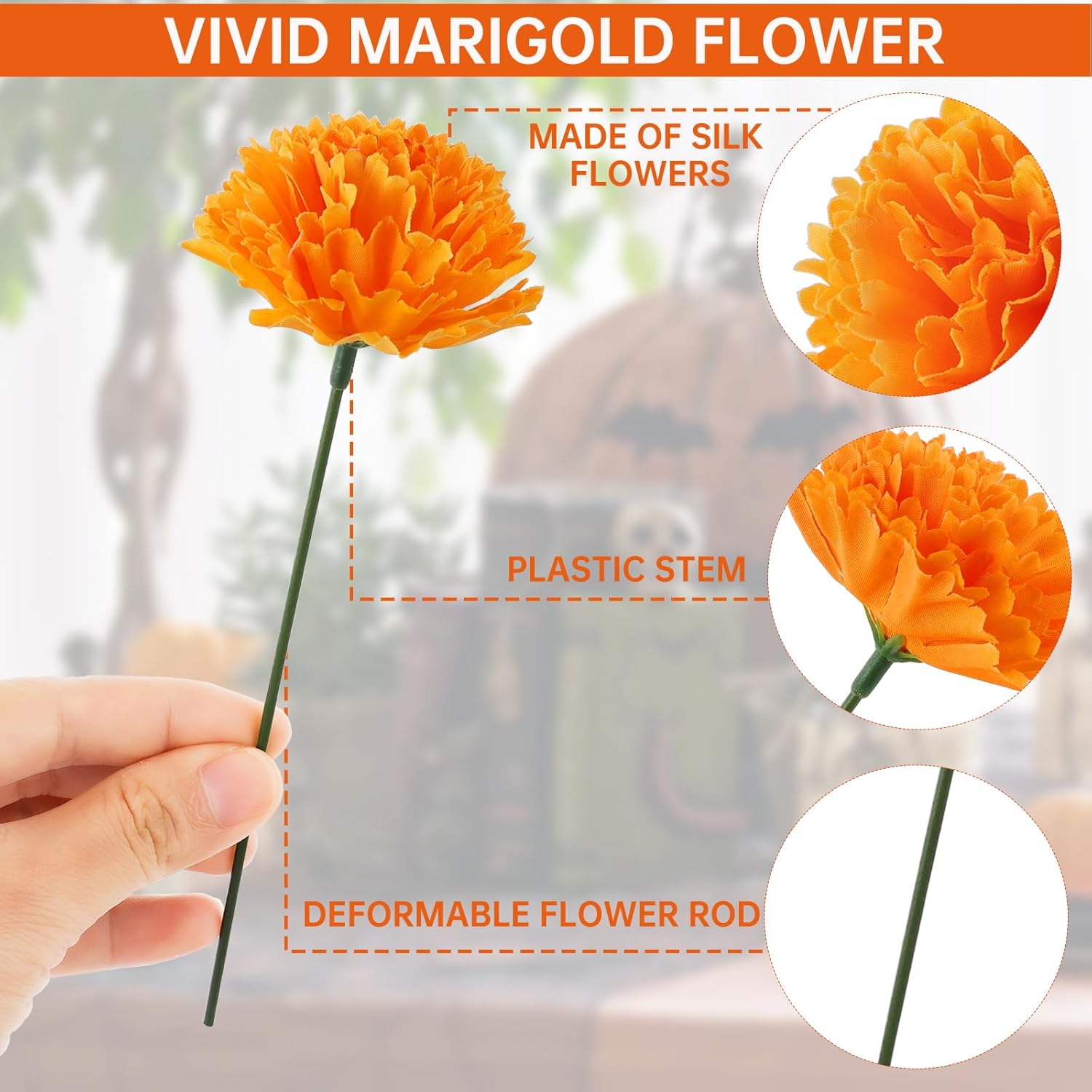 - Relistic: These artificial marigold will always look fresh and full of life just like the real thing for the high quality silk material.