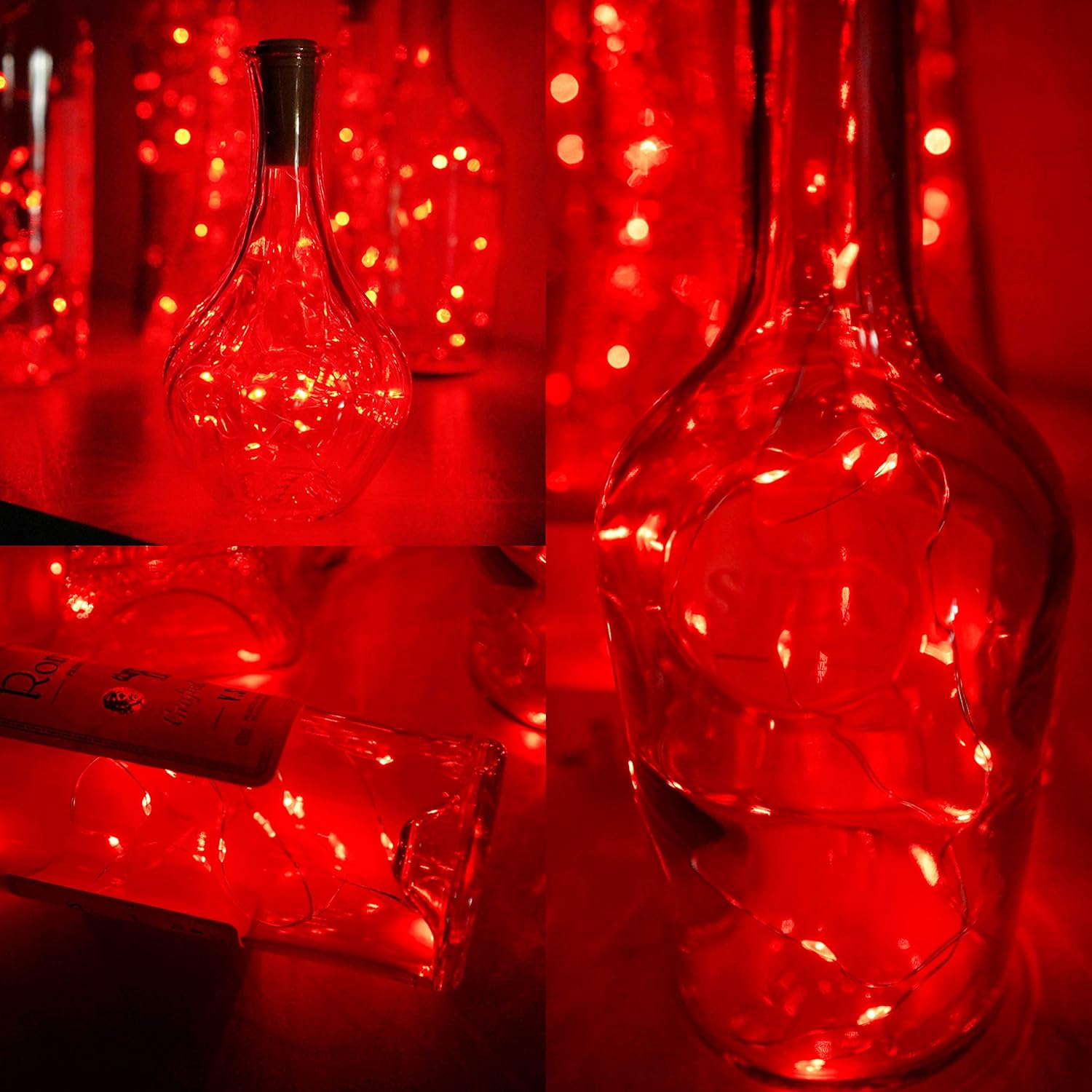 Wine Bottle Lights with Cork, Battery Operated 20 LED Cork Shape Silver Wire Colorful Fairy Mini String Lights(No Bottles) for DIY, Party, Decor, Christmas, Halloween,Wedding (3, Red)