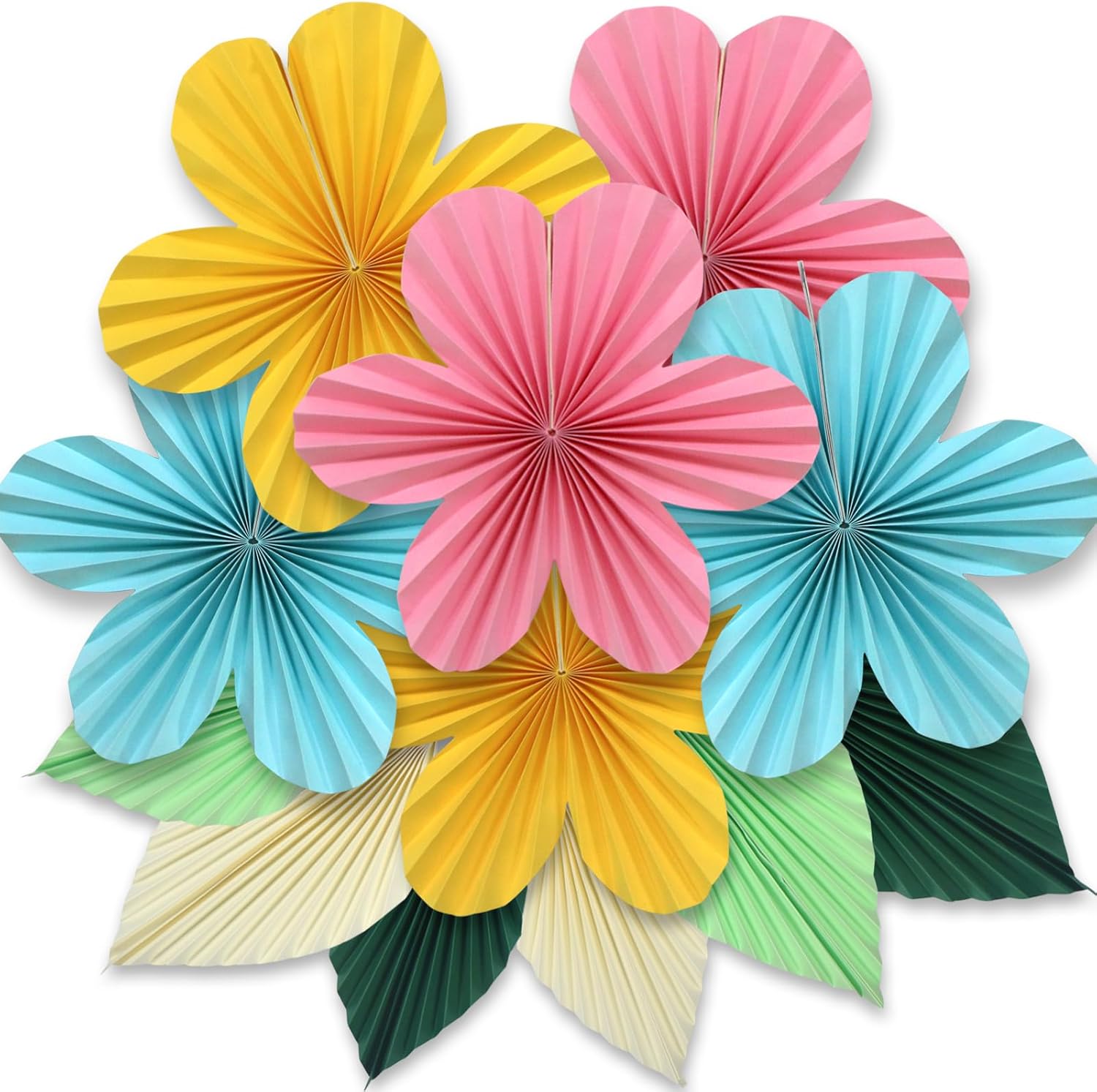 ADLKGG Paper Flowers Leaves Fan Party Decorations, Hanging Flower Wall Backdrop for Classroom Decor, Spring Party Decorations, Wedding, Tropical Jungle Forest Birthday, Fiesta Party, 12pcs