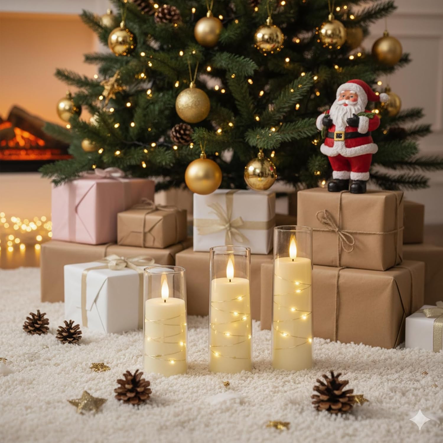 - 【Embedded String Lights】: The acrylic LED candle shell is inlaid with fairy lights inside, like multiple tiny "stars" to add light and charm. It is the great choice for decorating candles at home, weddings, Halloween, Thanksgiving, Christmas, etc.