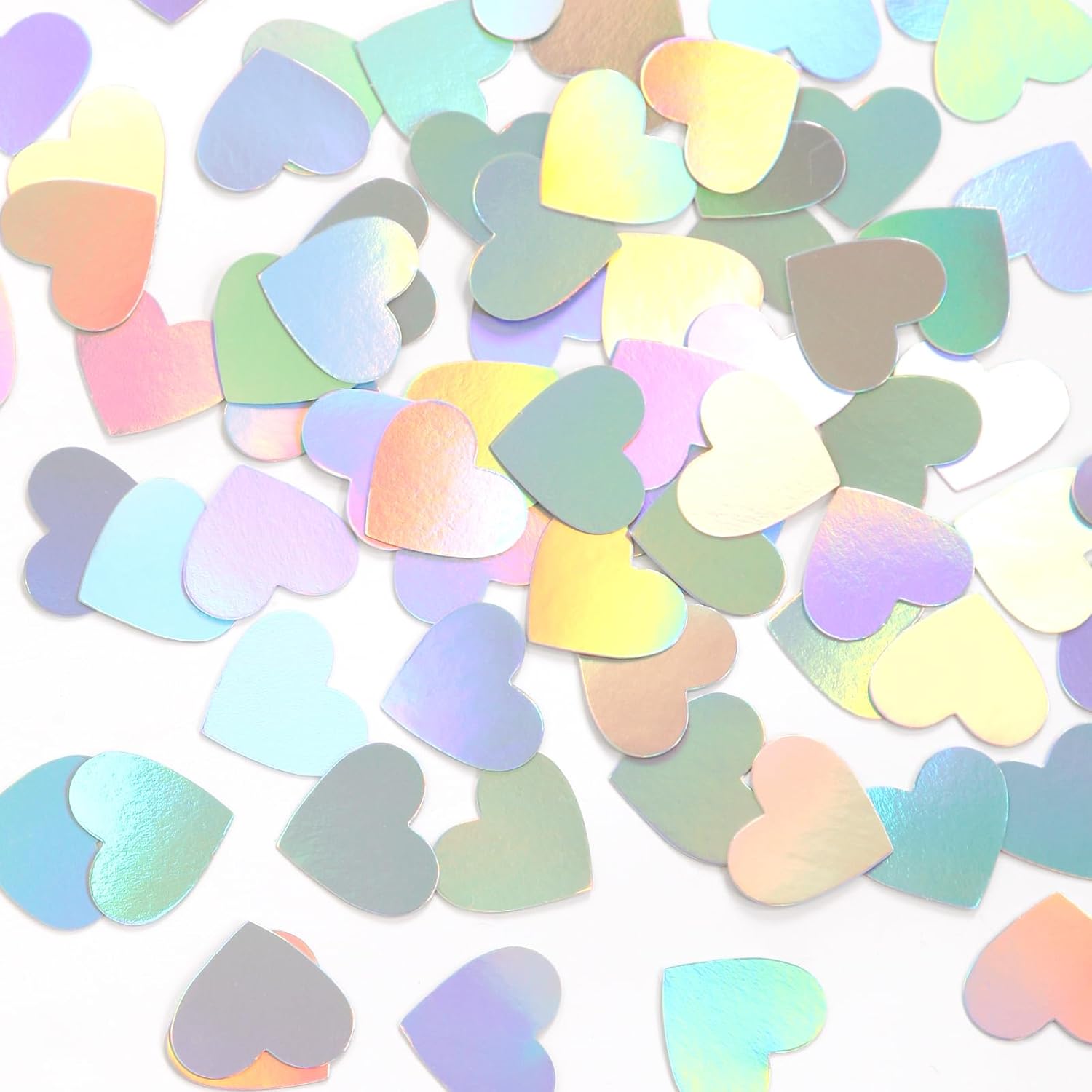 Iridescent-Disco Party-Decorations Heart Confetti - 300pcs Wedding Birthday Dining Table Centerpiece,Bachelorette Baby Bridal Shower Engagement Holographic Decor Lasting Surprise
