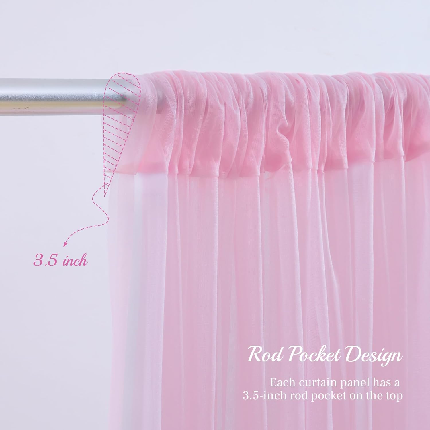 - 【Elegant Sheer Draping Fabric】Our baby pink backdrop curtain are crafted from high-quality delicate soft and smooth tulle.The fabric is so dreamy. It's like a semi sheer dress that flows in the wind, so romantic. And it's also lightweight to wear, the wind was able to blow it for a dramatic effect.