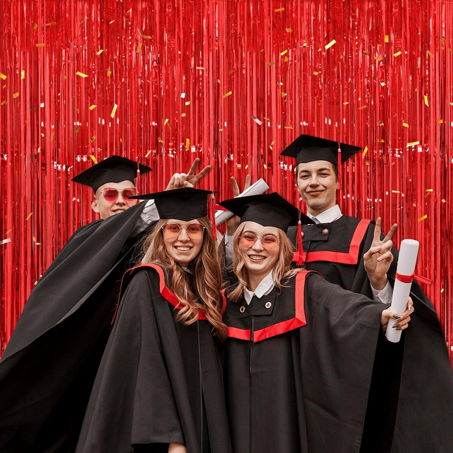 - πππ & πππππ - This red backdrop curtains can be used with balloons, banners, LED light and various photo props, or use it with other tinsel backdrop of different colors to achieve the color combination that you desired!