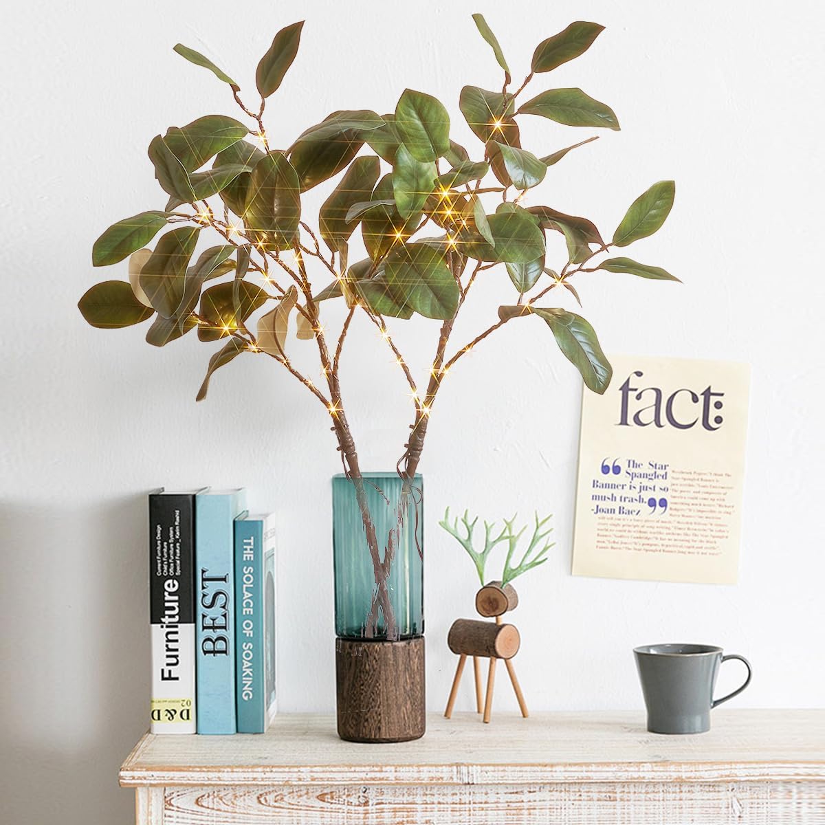 - 🌿 Spring Decor: 2024 NEW designed Magnolia branch lights,32in tall with 60 LED fairy lights,greenery leaves have realistic veining and detail, bringing the look of nature to your home,Great gift for valentines