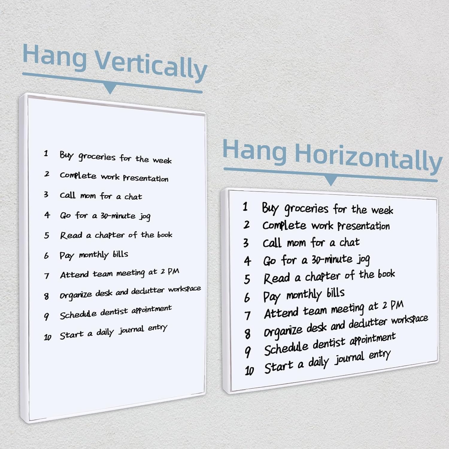 - 【Dual Hanging Options】With two hanging points on the back, choose between vertical or horizontal hanging to suit your space. Effortlessly integrate it into any environment for efficient note-taking or creative expression.