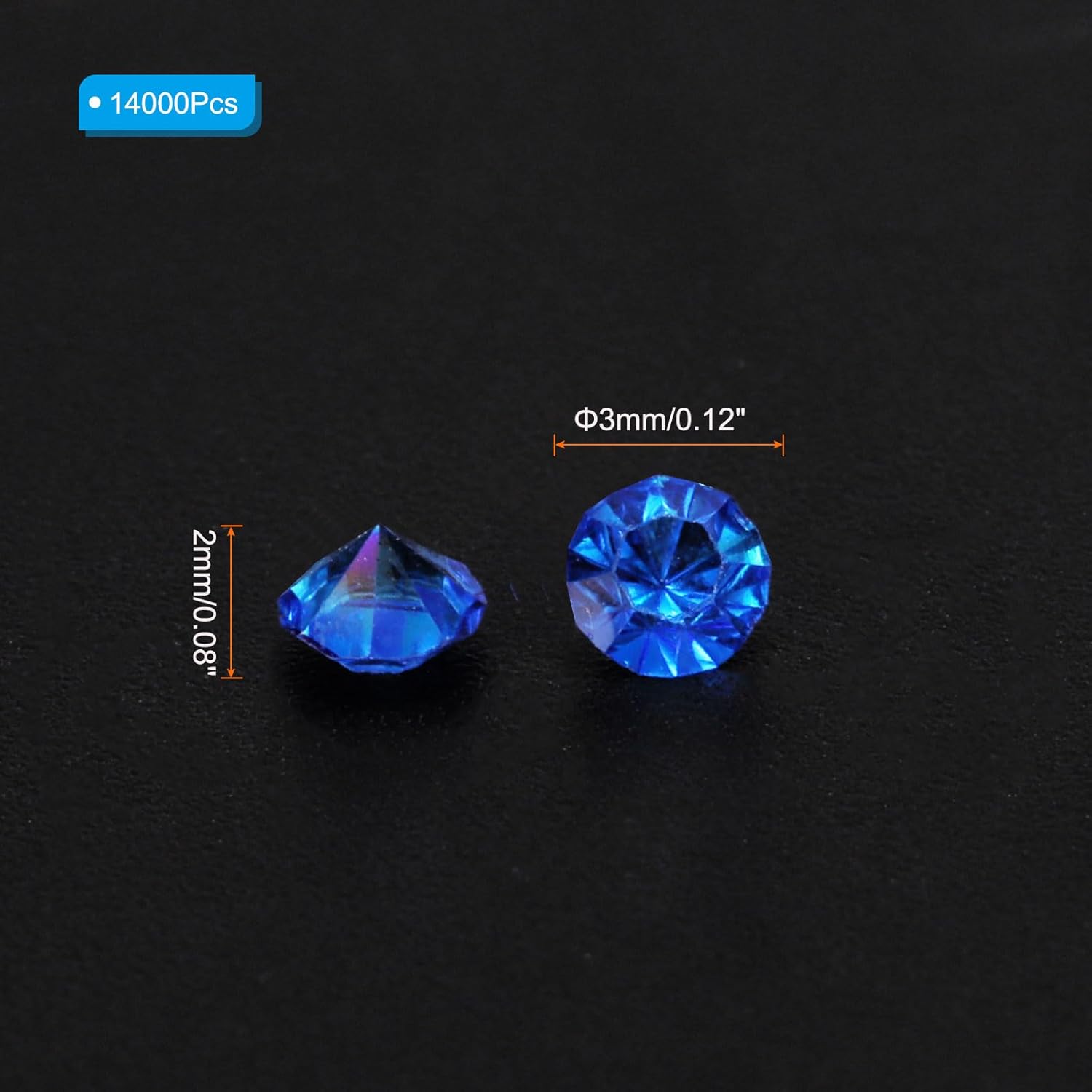 - Color: Dark Blue AB; Material: Acrylic; Size: 3mm x 2mm/ 0.12 x 0.08 inch (Dia.x H); Packing List: 14000Pcs x Acrylic crystal diamonds