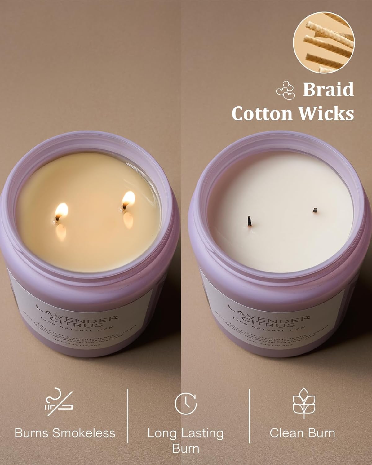 M&SENSE Lavender Citrus Candles, 19.4oz 110H Burn Time Large Natural Soy Candles for Home Scented, Stress Relief Aromatherapy Gifts for Mom Friends Teacher & Spa, Bath, Yoga