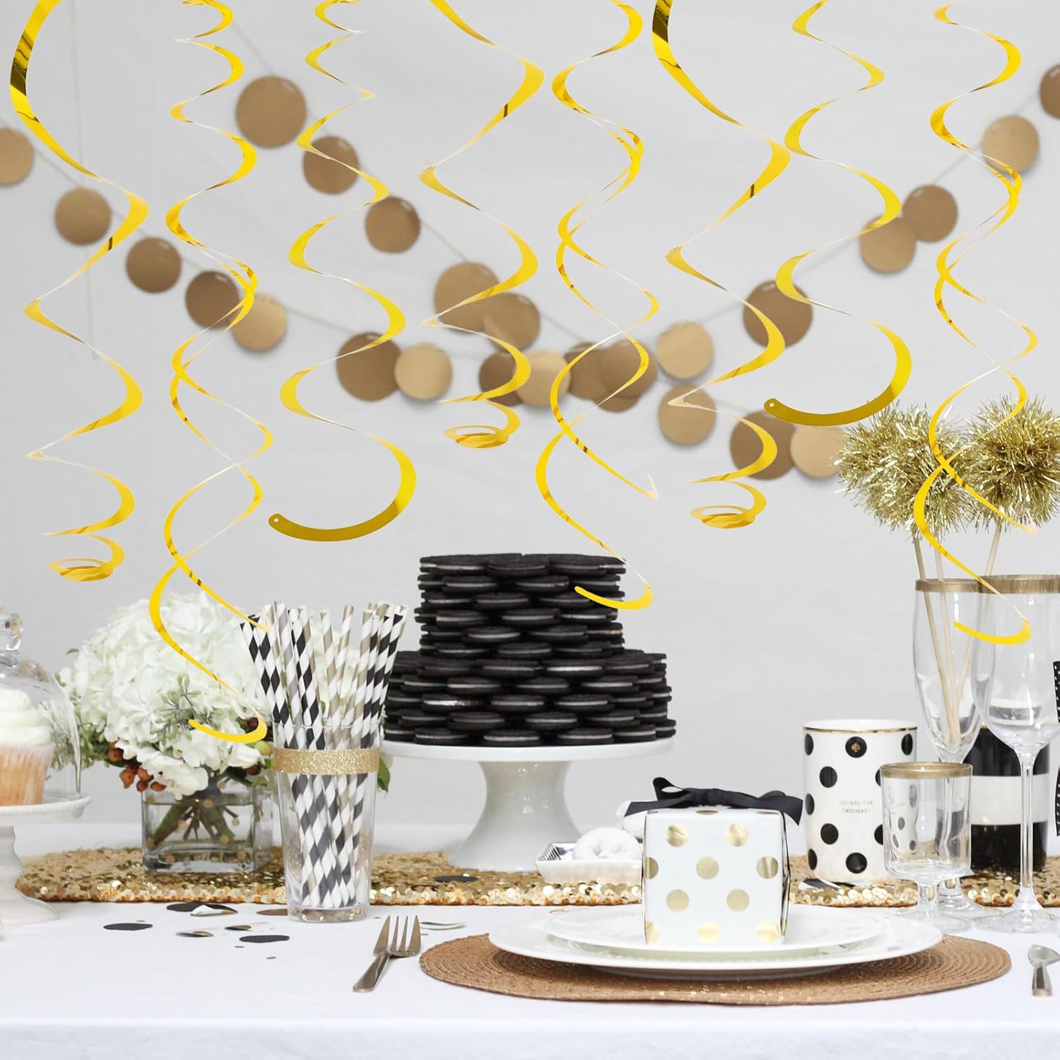 - Assemble Easy: The gold hanging swirls have a small ring on them, just tear the swirl slowly along the edge and hang it on the hook to complete a simple party decoration. Time saving and easy to operate.