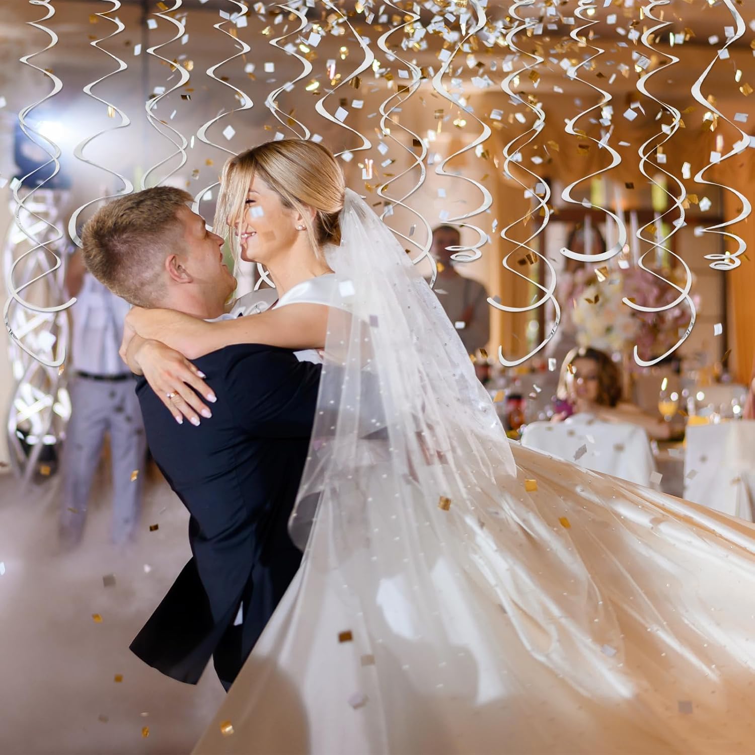- Assemble Easy: The silver hanging swirls have a small ring on them, just tear the swirl slowly along the edge and hang it on the hook to complete a simple party decoration. Time saving and easy to operate.
