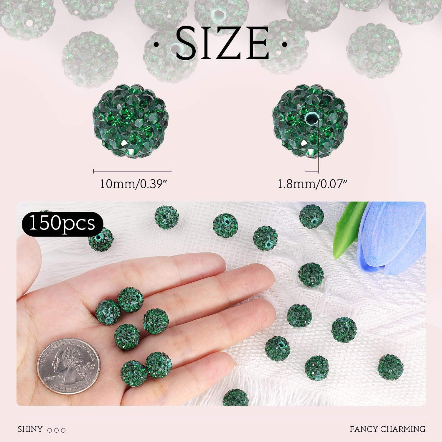 - DELICATE SIZE -- The diameter is about 10 mm (0.39") and the hole is about 1.8 mm (0.06"). It’s the most popular and adaptable size for making sparkling jewelry and crafts. Suitable for most stringing materials, such as crystal elastic string, fiber rope, memory steel loops. You can also mix different beading materials, such as natural stone beads and spacer beads to create sparkly, shiny and attractive handmade accessories.