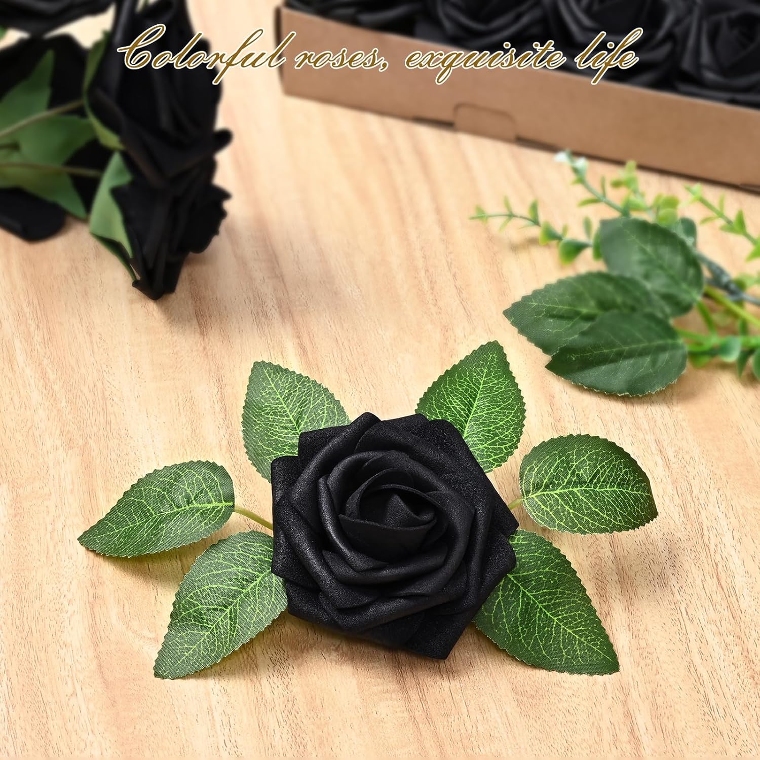 - Kindle Your Creative Flames: The box includes 36 black roses (3" flower head, 8" stem) and 8 green rose leaves, perfect for an array of DIY crafts. Whether creating wedding bouquets, graduation or birthday party ornaments, baby shower decorations, or cake adornments, our faux roses add a touch of class to every important moment.