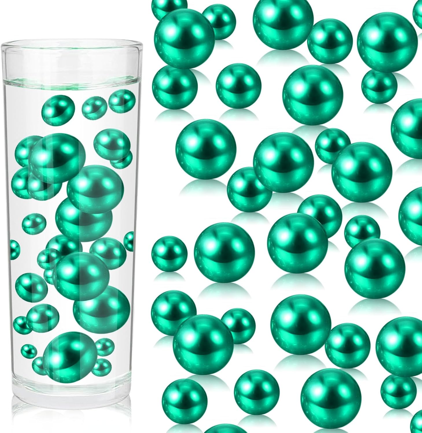 100PCS Green Faux Pearls Beads for Centerpiece Vases, Vase Filler Faux Pearls, No Holes Filler Beads for Party Anniversary Birthday Wedding Table Decor, 14/20/30mm