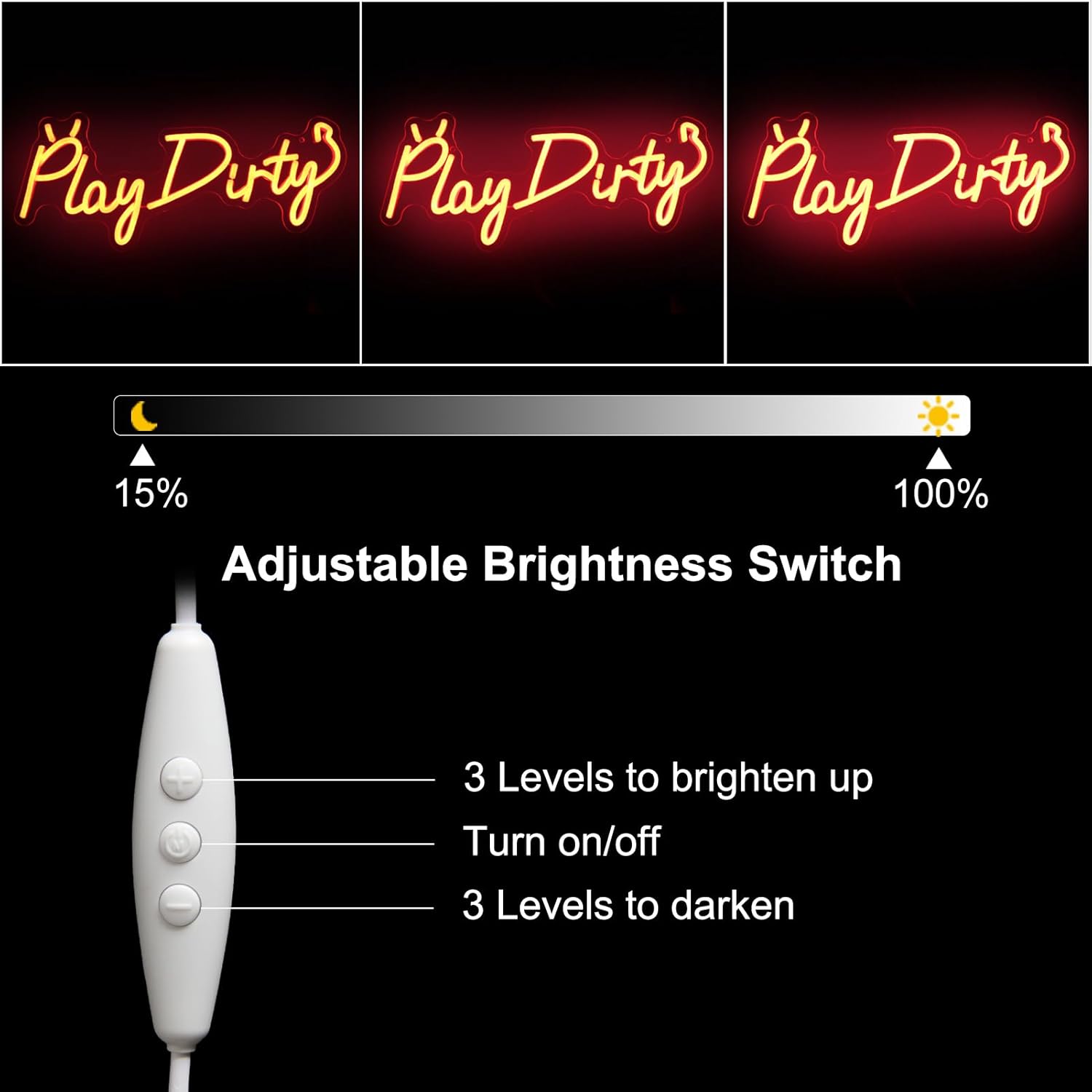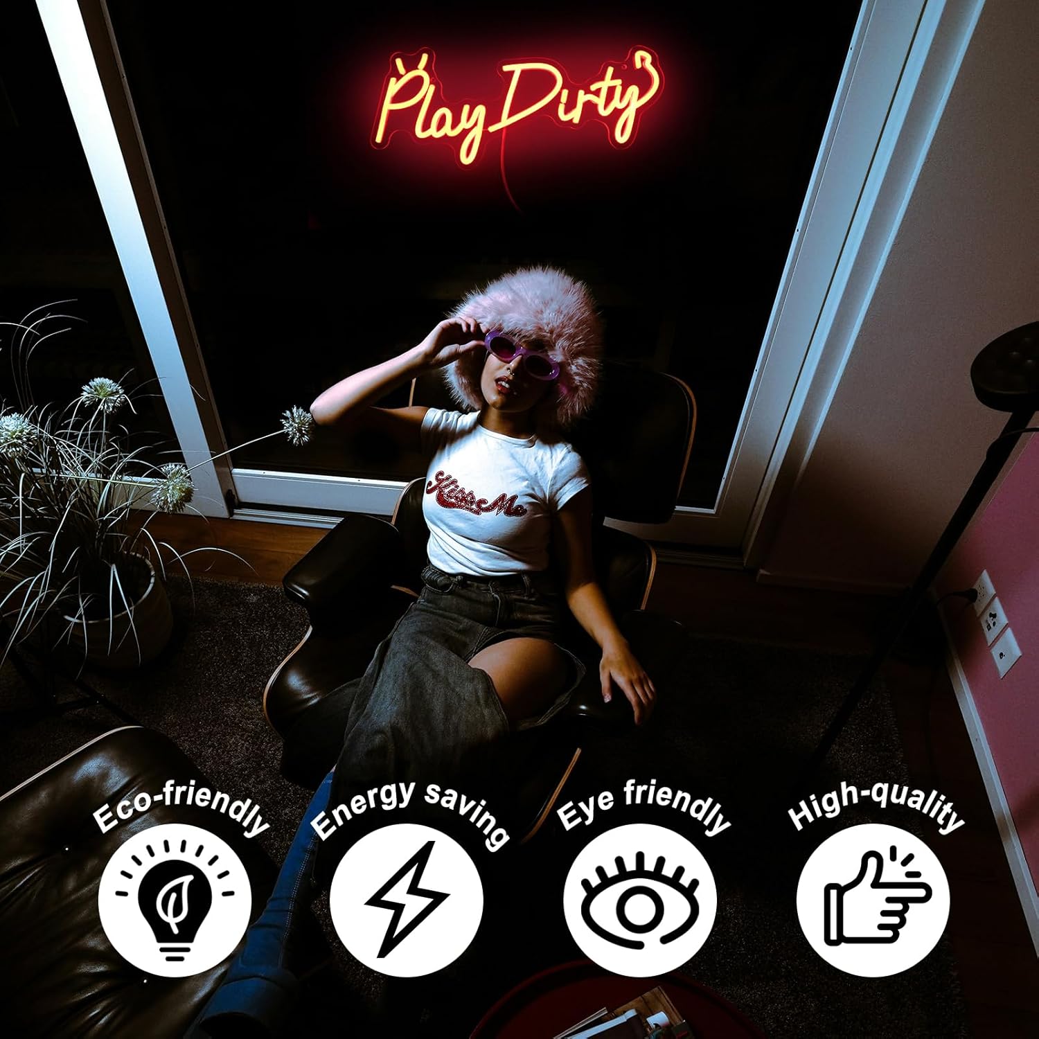 - 【Room Decor & Gift】Play Dirty neon light is definitely a good choice to decorate bedroom, living room, bar, pub, hotel, man cave or party. It is also a great gift at birthday, Christmas, New Year's and anniversary for girls/friends/family/colleagues.