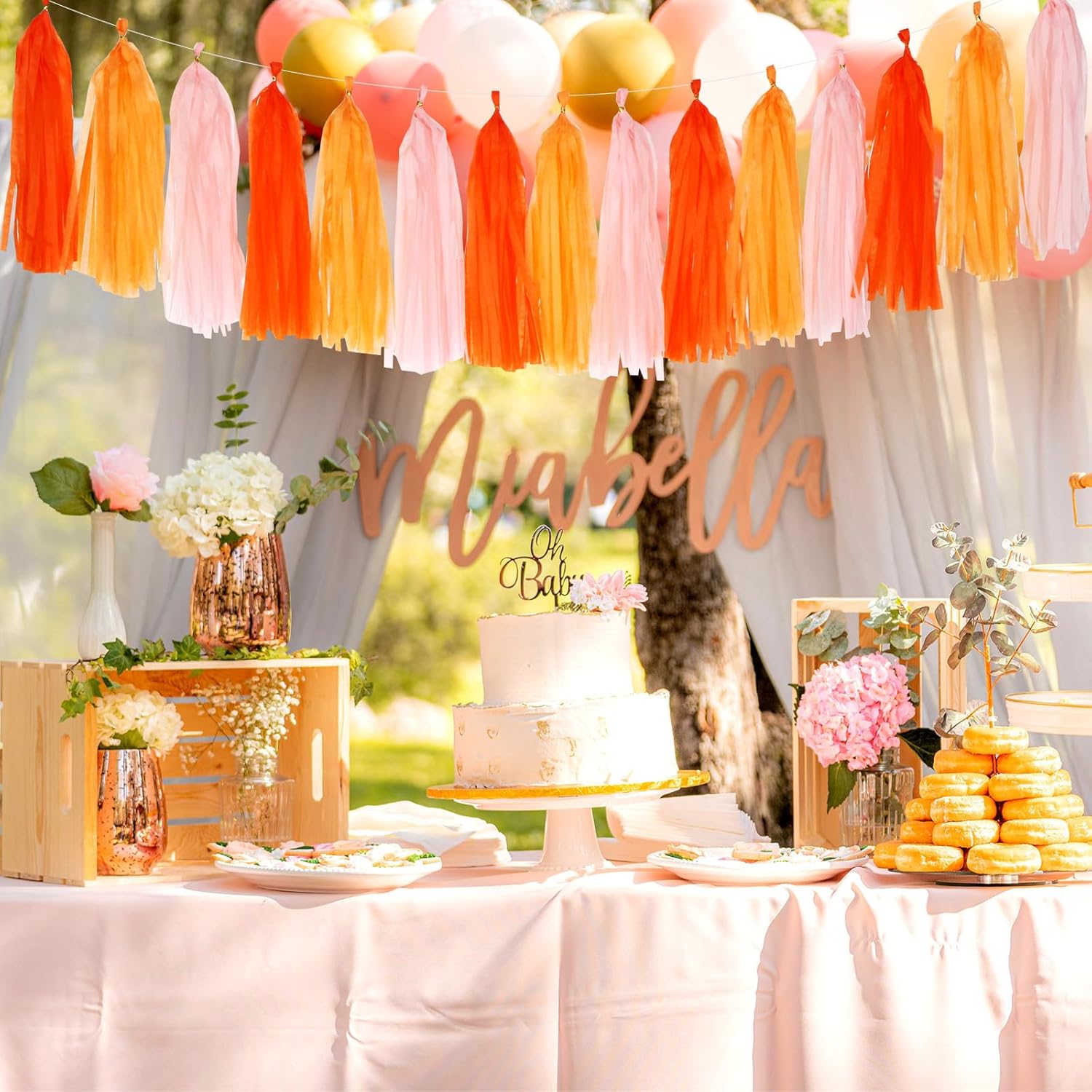 - Package Including:The pink orange party decorations 1pcs paper garland dots,1pcs Triangle Flags in three color,15pcs tassel garland in three color,2pcs 8” paper lantern,6pcs streamers in three color,1pcs 10” paper lantern fan,3pcs 10” honeycomb ball in two color,1pcs 12” honeycomb ball in two color,2pcs 12”paper lantern fan,1pcs 16”paper lantern fan.