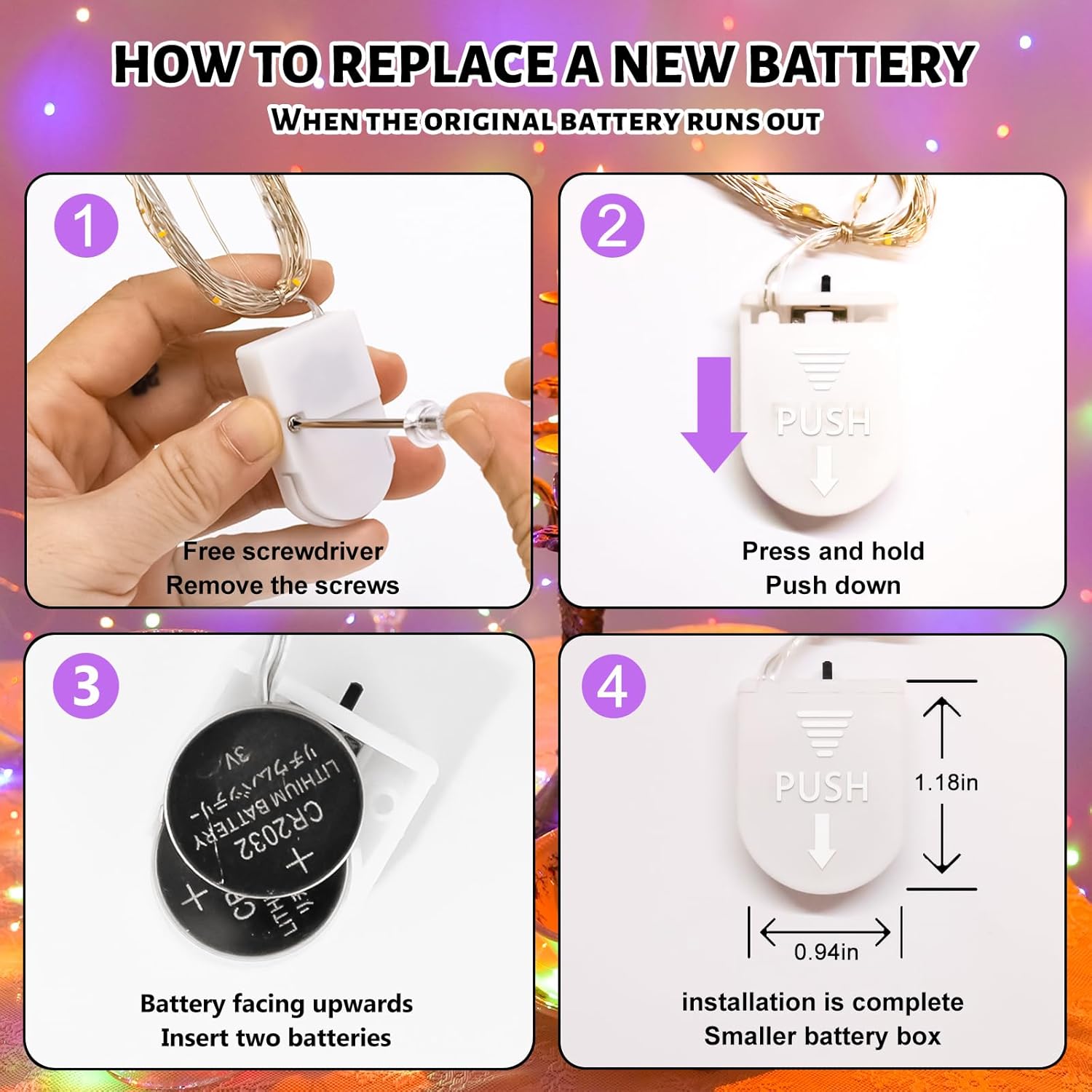 - 【Battery Powered】: Each set of lights powered by 2X CR2032 batteries( included and can be replaced). Although these support more than 72 hours continuous working, the actual use time will vary with the temperature and humidity of the environment.