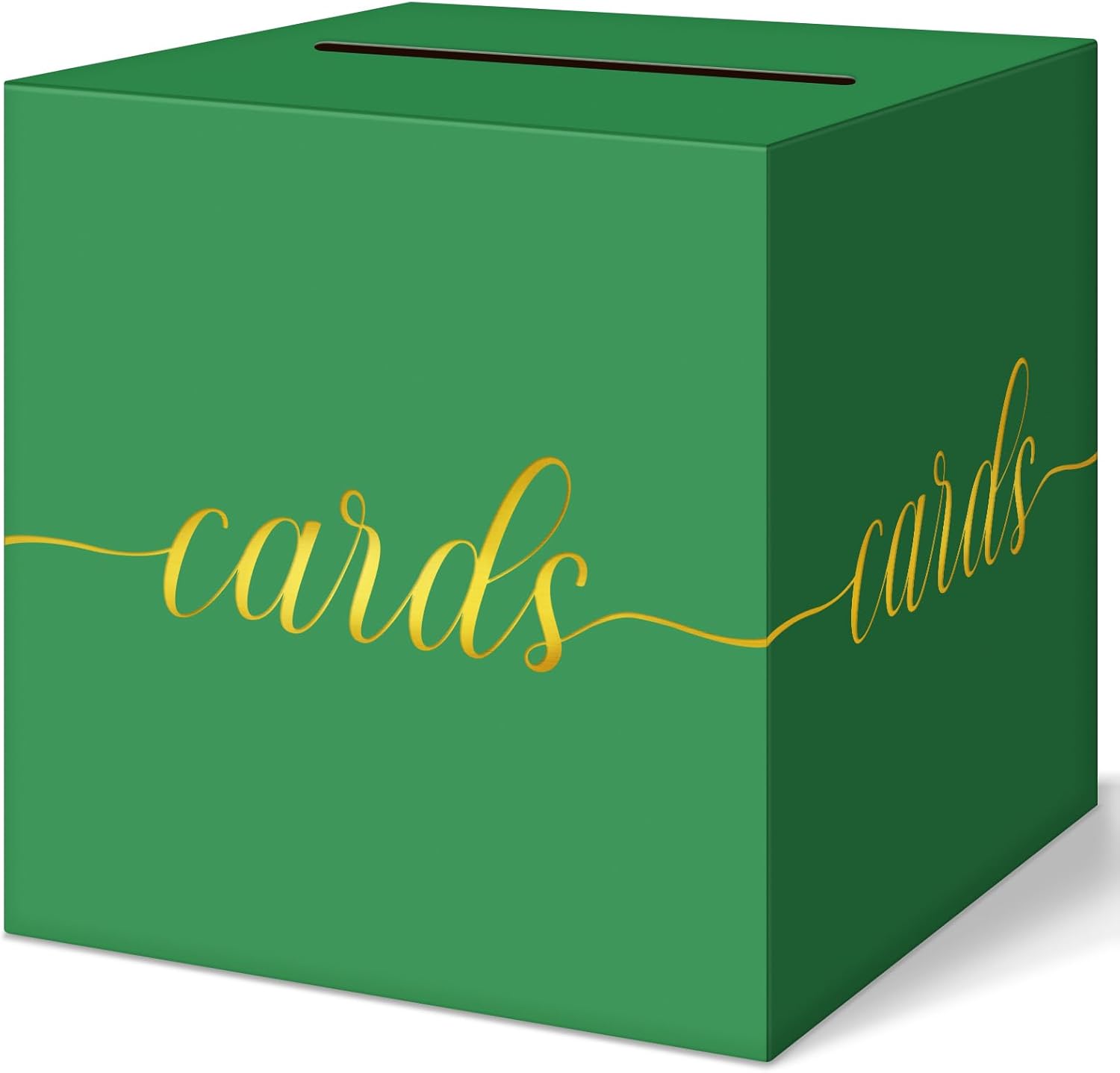 - Gold Foil Green Graduation Card Box Size: Pack of 1, card box measures 8.7 x 8.7 x 8.7 inches, large size to hold all sizes of envelope cards for weddings or parties.
