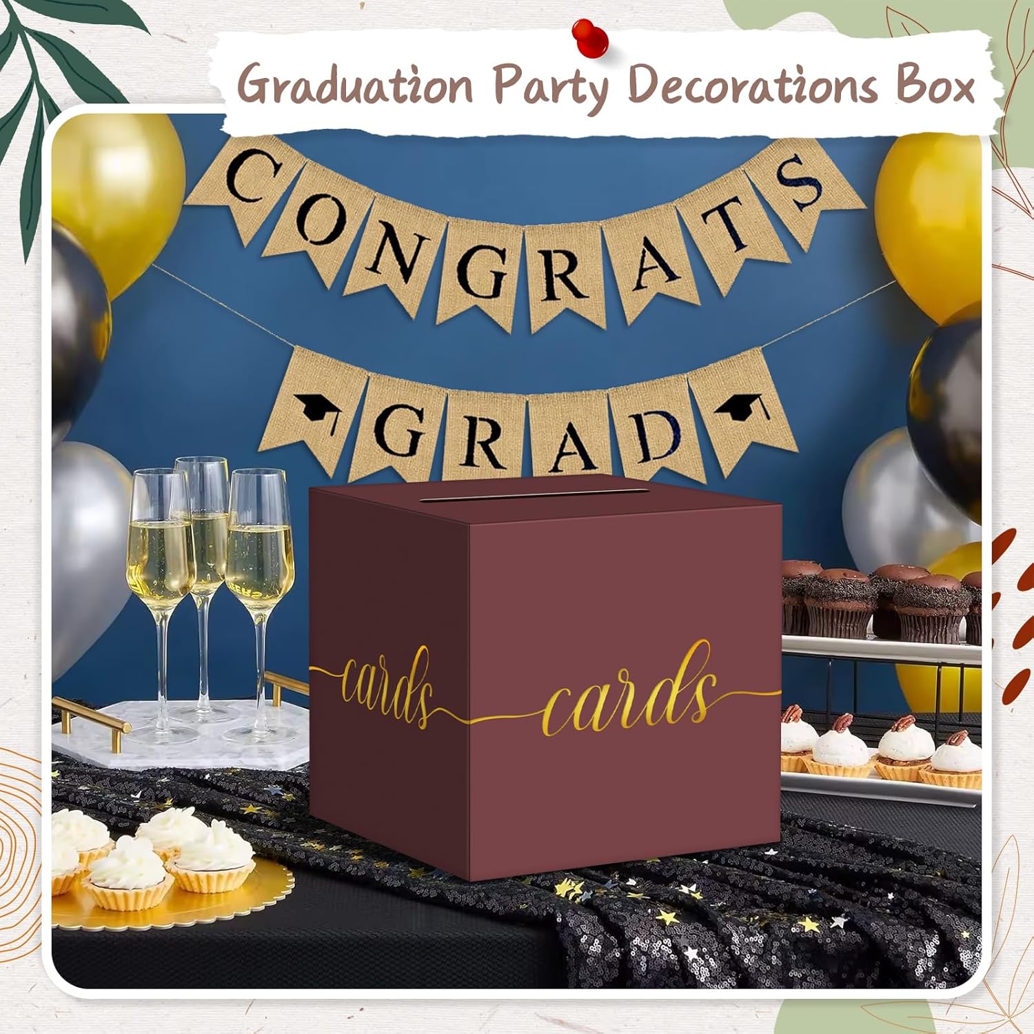 - Gold Foil Maroon Graduation Card Box Size: Pack of 1, card box measures 8.7 x 8.7 x 8.7 inches, large size to hold all sizes of envelope cards for weddings or parties.