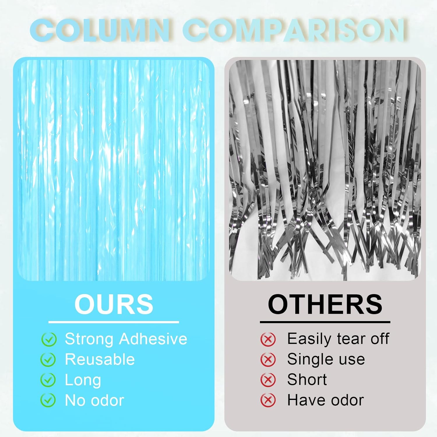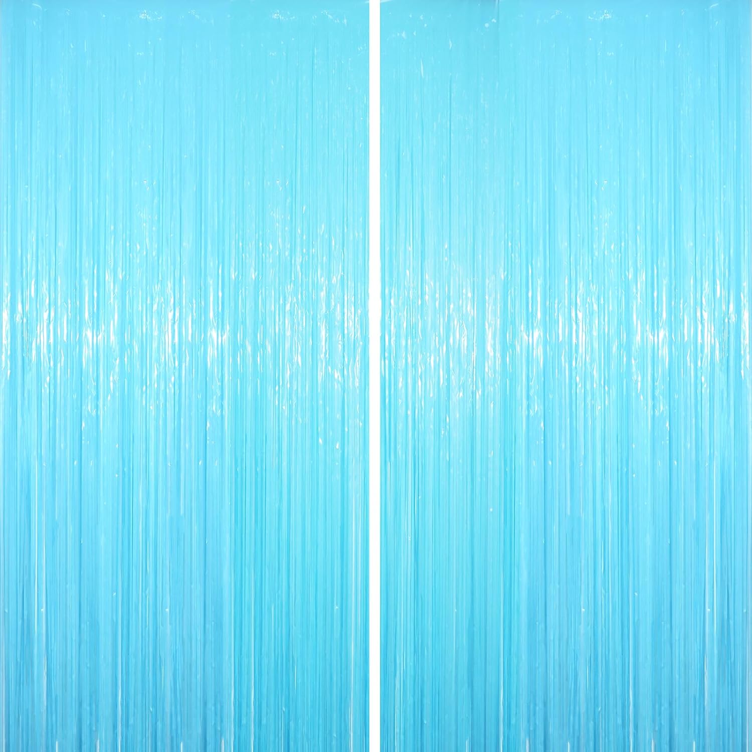 - Stunning Decorative Set: You'll receive 2 pcs pastel blue foil fringe backdrop curtains, each measuring 3.28 ft (wide)×6.56 ft (drop). Enough length foil fringe curtains backdrops are perfect for the door or wall to create an impressive decoration