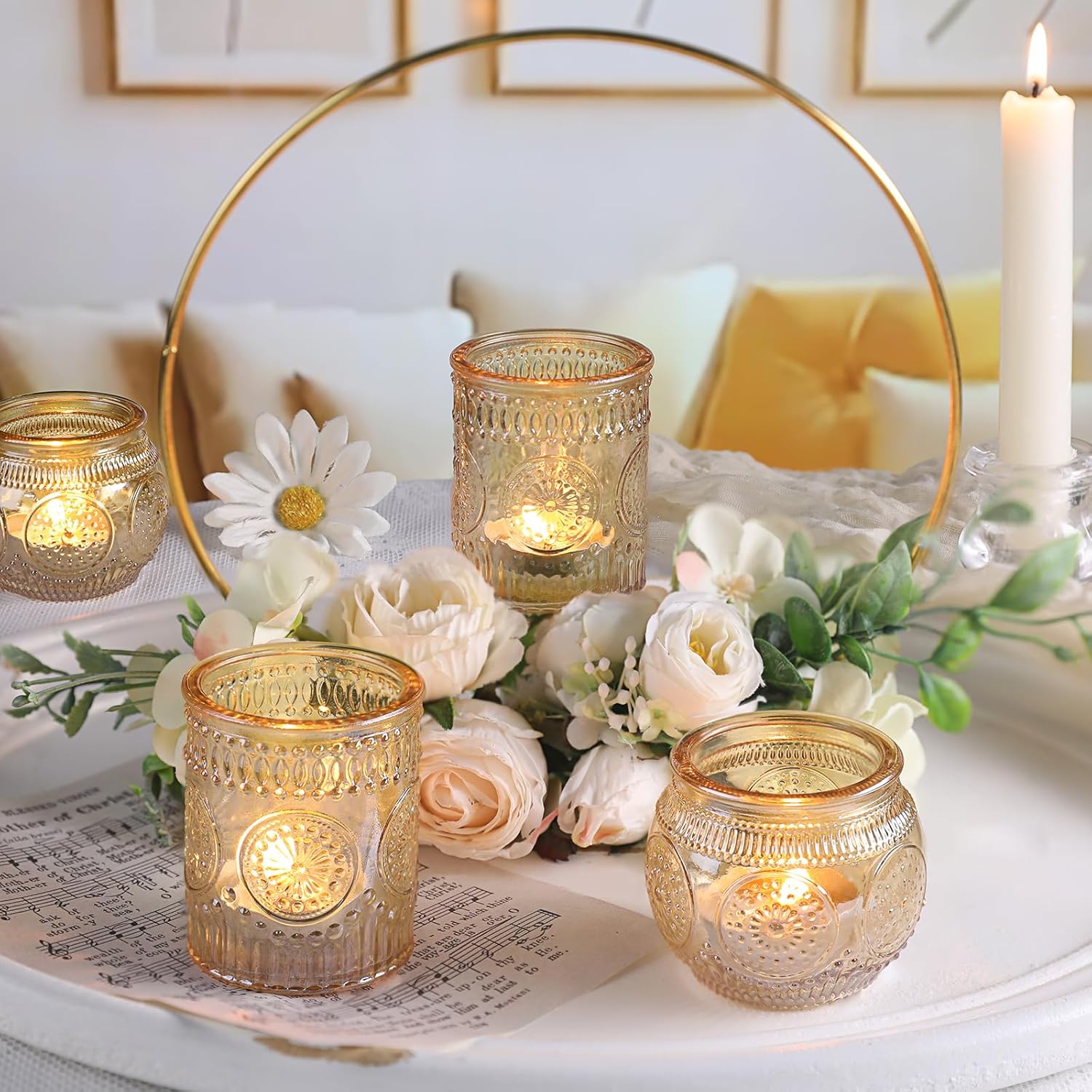 - ❤️❤️[ Vintage Sunflower Embossed Style ]❤️❤️: This is the spark collision of retro and simple fashion. The combination of embossing technology and glass makes the votives more nostalgic and textured. At the same time, we chose the sunflower element, which is very cute and exquisite on the basis of vintage. Maybe you want a special and unforgettable party, DARJEN's nice design and well-made tea lights candle holder will be a necessity for your party centerpieces.
