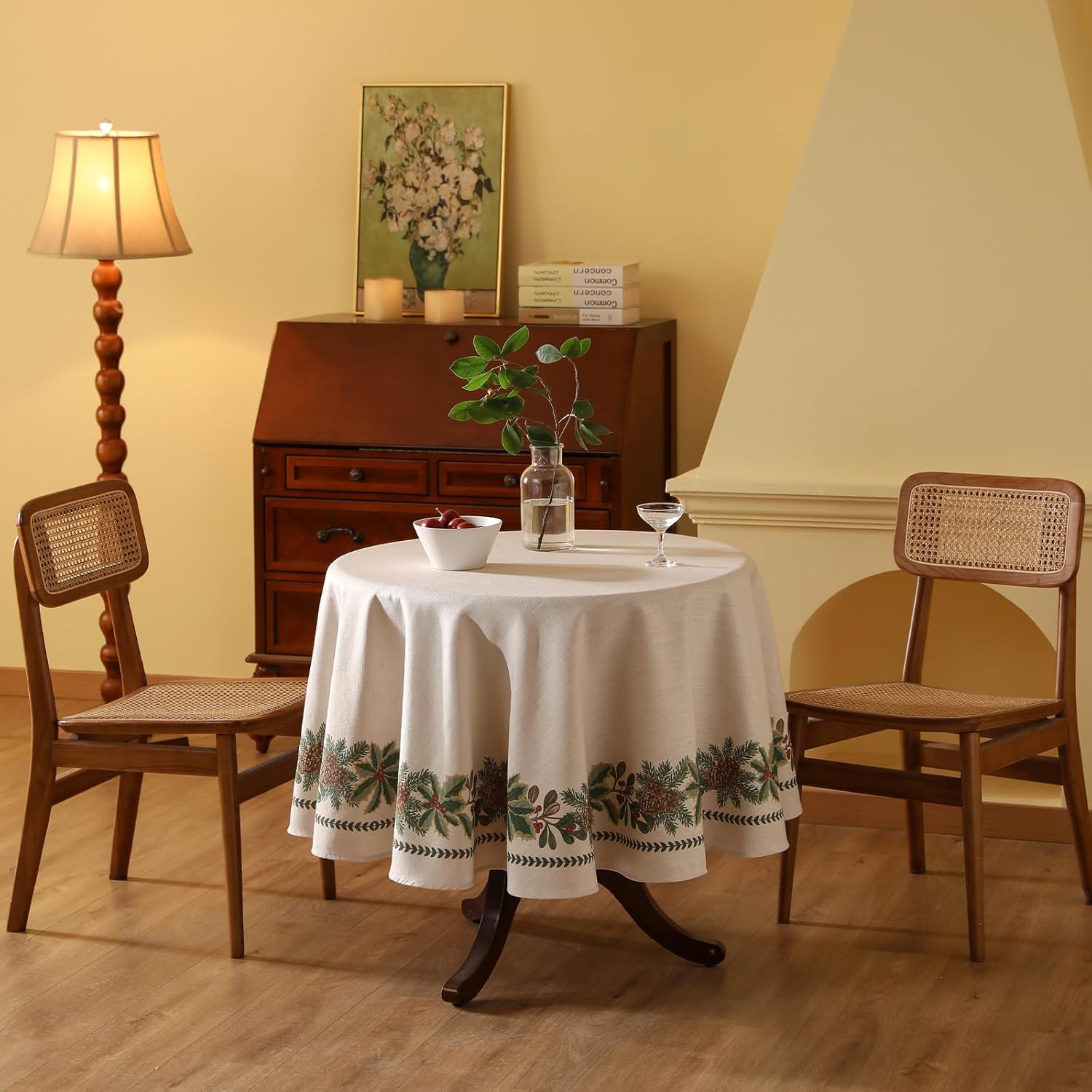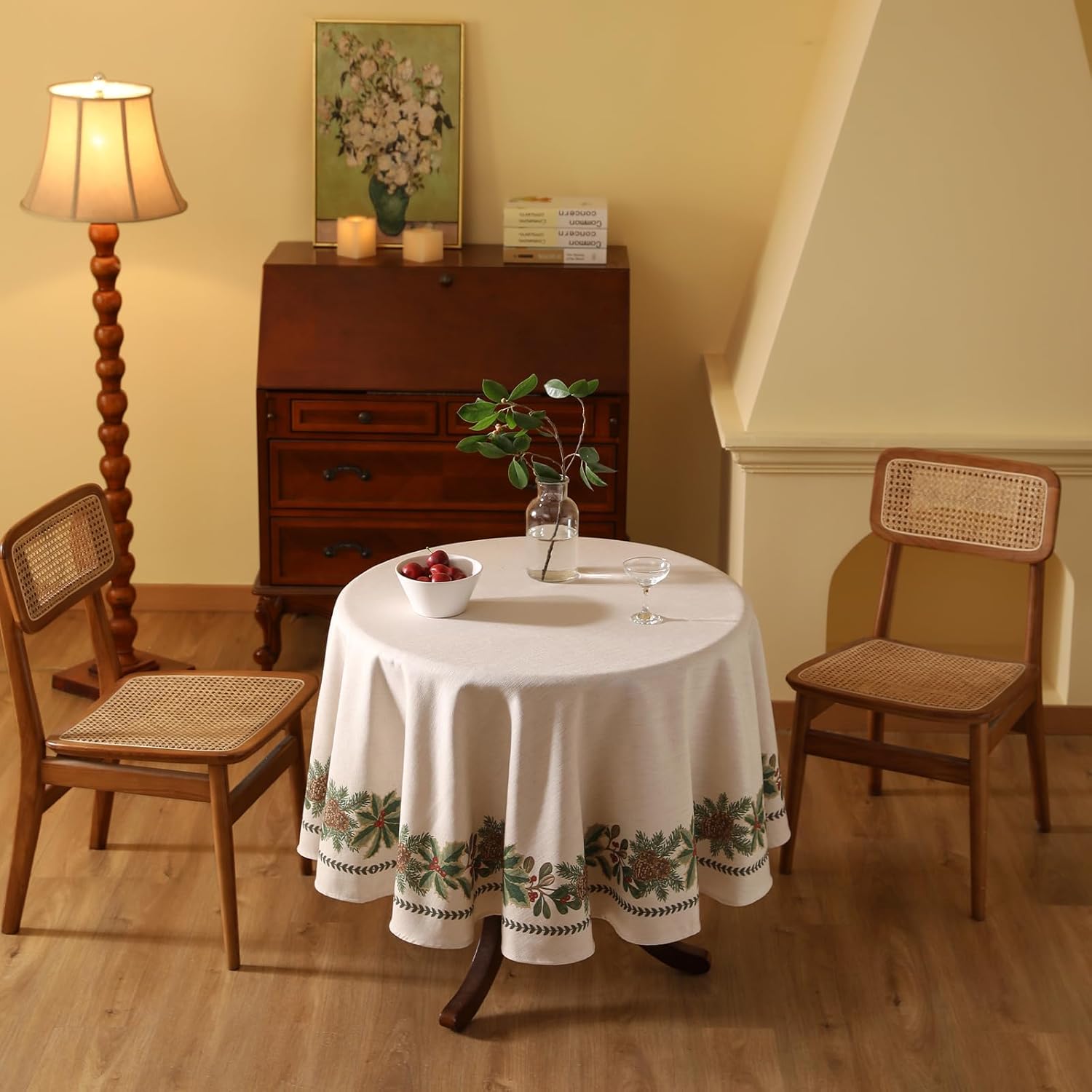 ISAENNE Designer Christmas Linen Round Tablecloth,Light Beige Western Elegant Table Cloth,Wrinkle Resistant Decor Tablecloths for Dining Thanksgiving Kitchen Christmas,Diameter 67"-Carol G