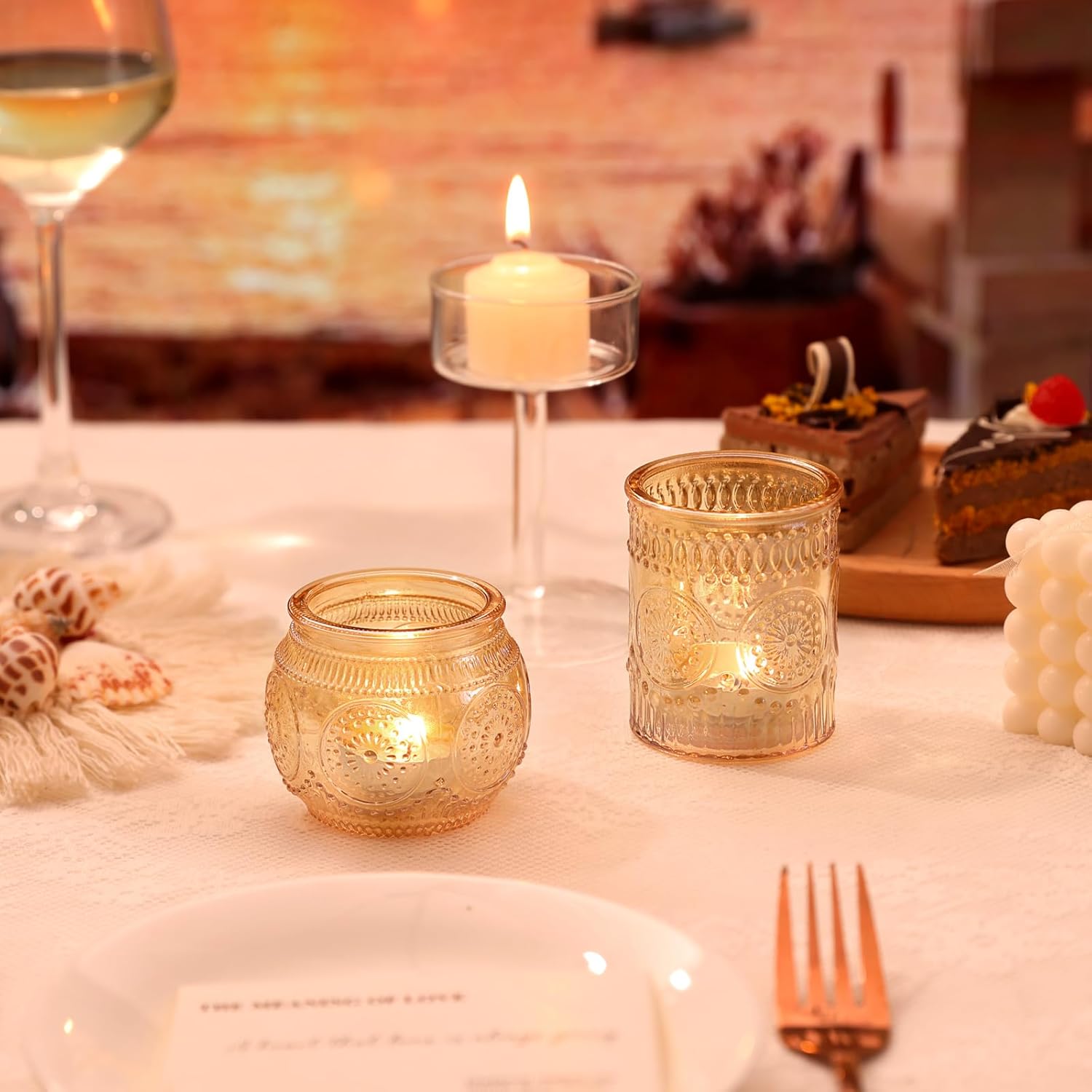 - ❤️❤️[ Vintage Sunflower Embossed Style ]❤️❤️: This is the spark collision of retro and simple fashion. The combination of embossing technology and glass makes the votives more nostalgic and textured. At the same time, we chose the sunflower element, which is very cute and exquisite on the basis of vintage. Maybe you want a special and unforgettable party, DARJEN's nice design and well-made tea lights candle holder will be a necessity for your party centerpieces.
