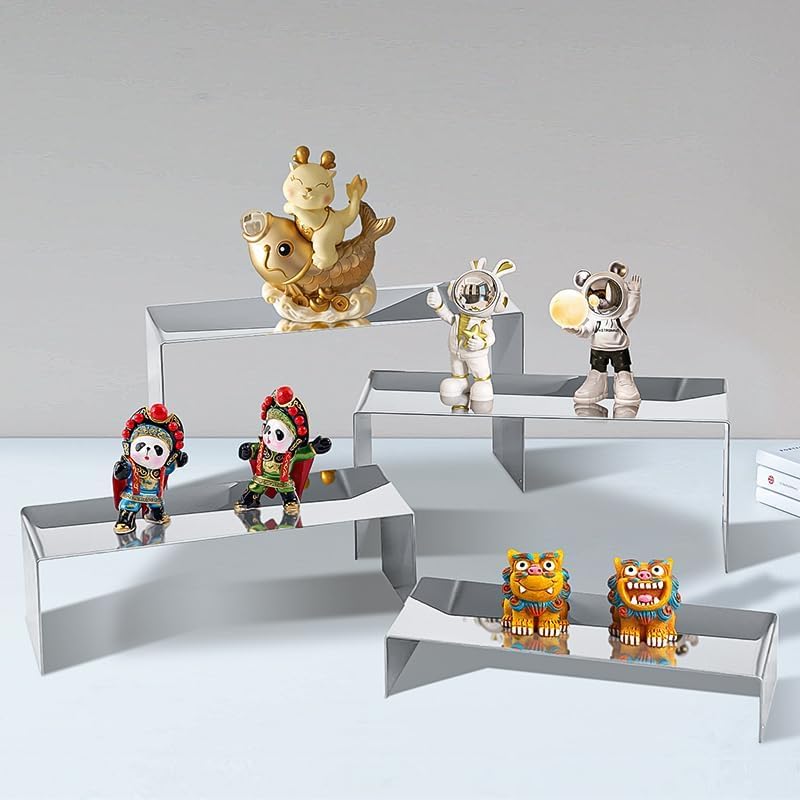 4 Pcs Silver Stainless Steel Display Risers, Display Stand for Display Cupcake Dessert Perfume Purse Handbag Shoe Jewelry and Funko Pop