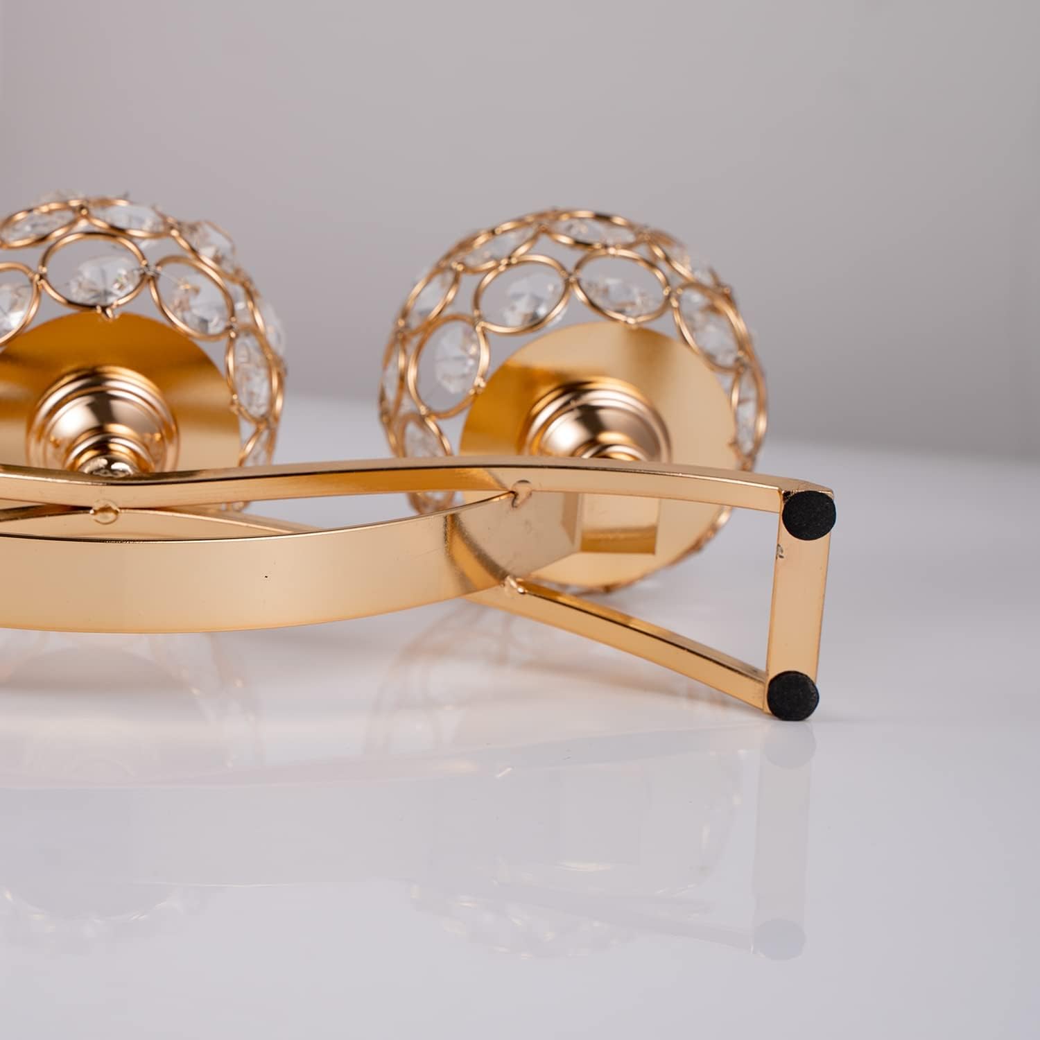 - ❤ Design of the Size:height:3 arm gold crystal candle holders, 14cm/5.51inch, length: 27.5cm/10.82inch. Upper candle cup diameter: 8.35cm/3.34inch, net weight: 0.65kg. Fits candle sizes up to 2.75 inches in diameter.