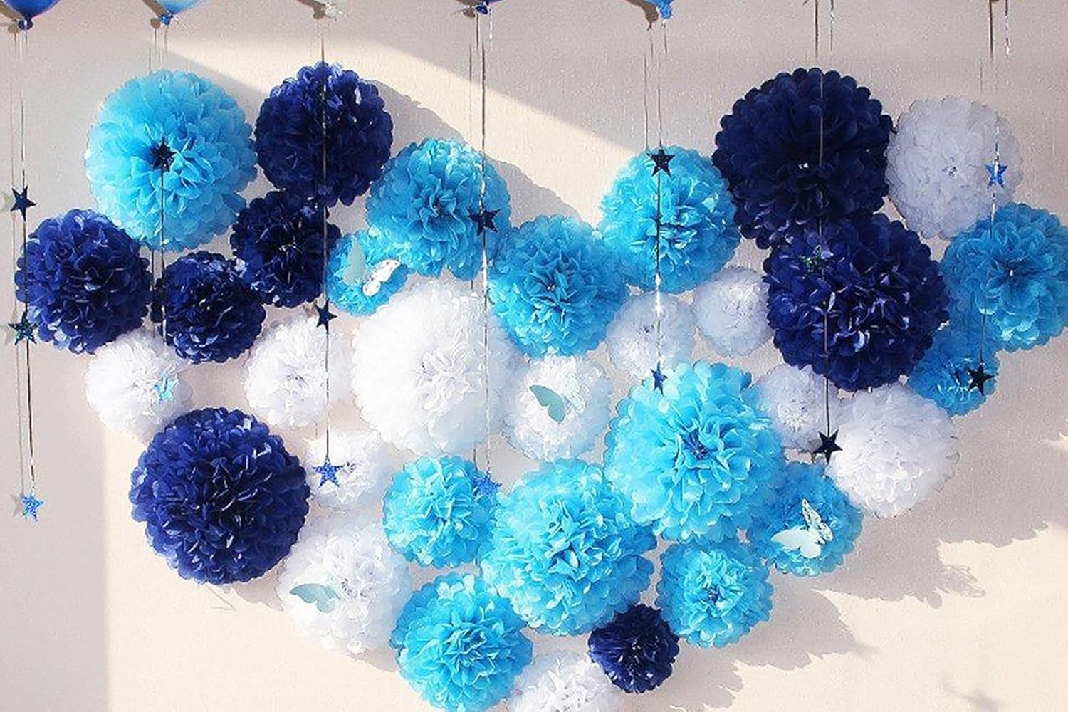- PAPER FLOWER POM POMS Used in lieu of balloons, for they are more lightweight. They can be scattered as dessert table decor, or placed in vases as unique centerpieces. You can create a wonderful backdrop for your family or friends with it
