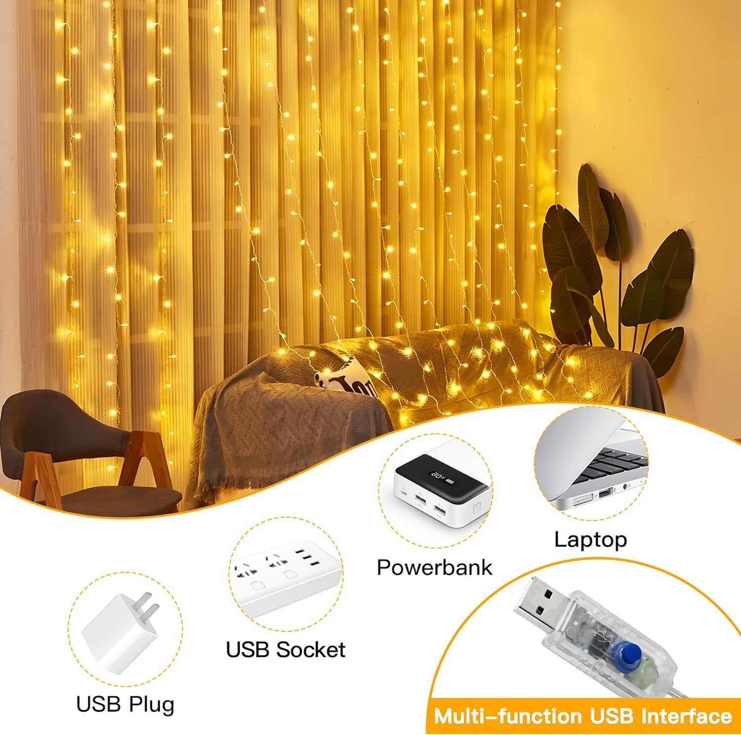 - [IP44 Waterproof] The curtain lights outdoor are waterproof and you can hang them outside as backdrop for patio, garden, fence, yard, porch, gazebo, backyard, palm tree. (However, the USB power is not waterproof, so be sure to protect it from moisture)