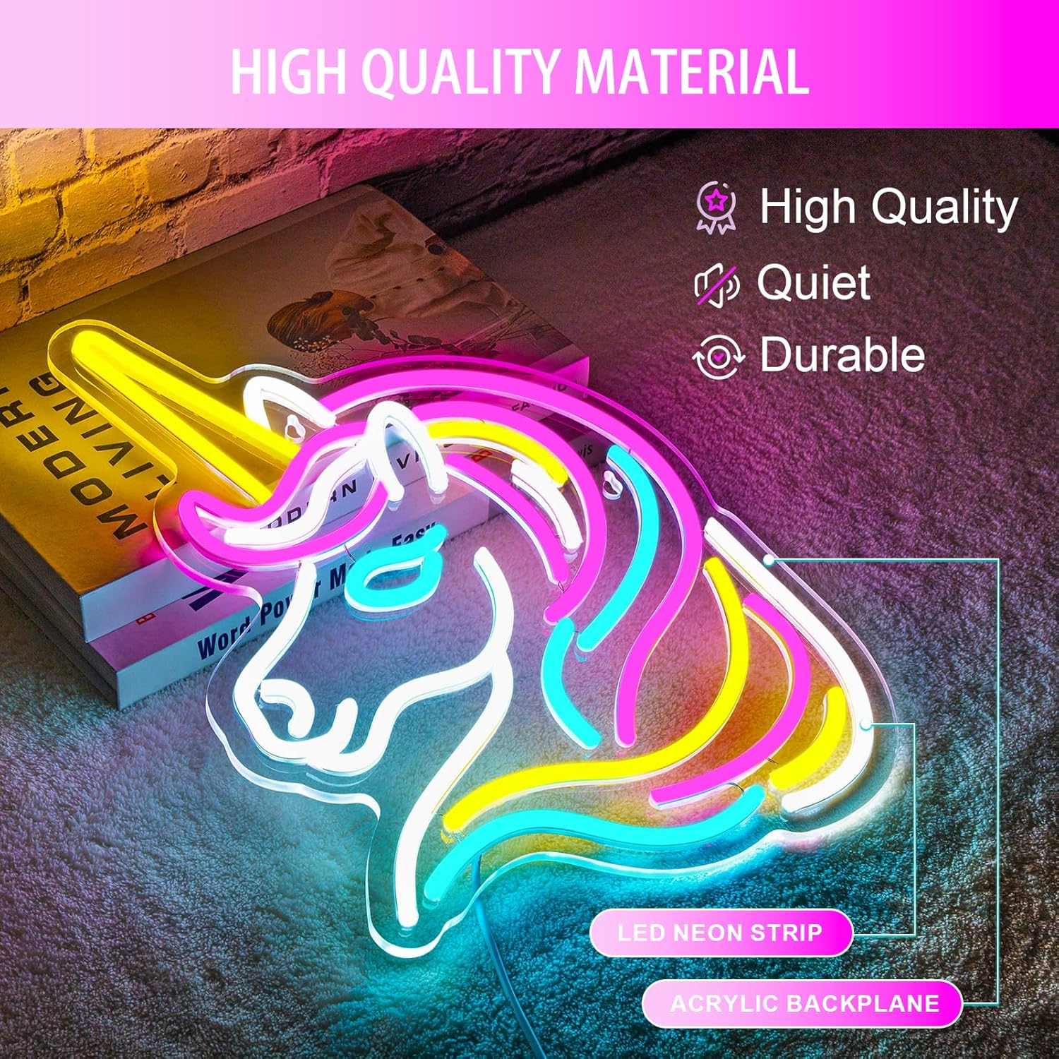 - 💎 【High-Quality LED Unicorn Signs for Girls Bedroom 】The led unicorn room sign crafted from premium acrylic, silicone light tubes, and energy-efficient LED beads, consuming minimal power. unicorn neon for room compared with the unicorn led wall sign of the glass, acrylic neon signs are safe, quiet, and durable to provide a long -lasting value for your decoration