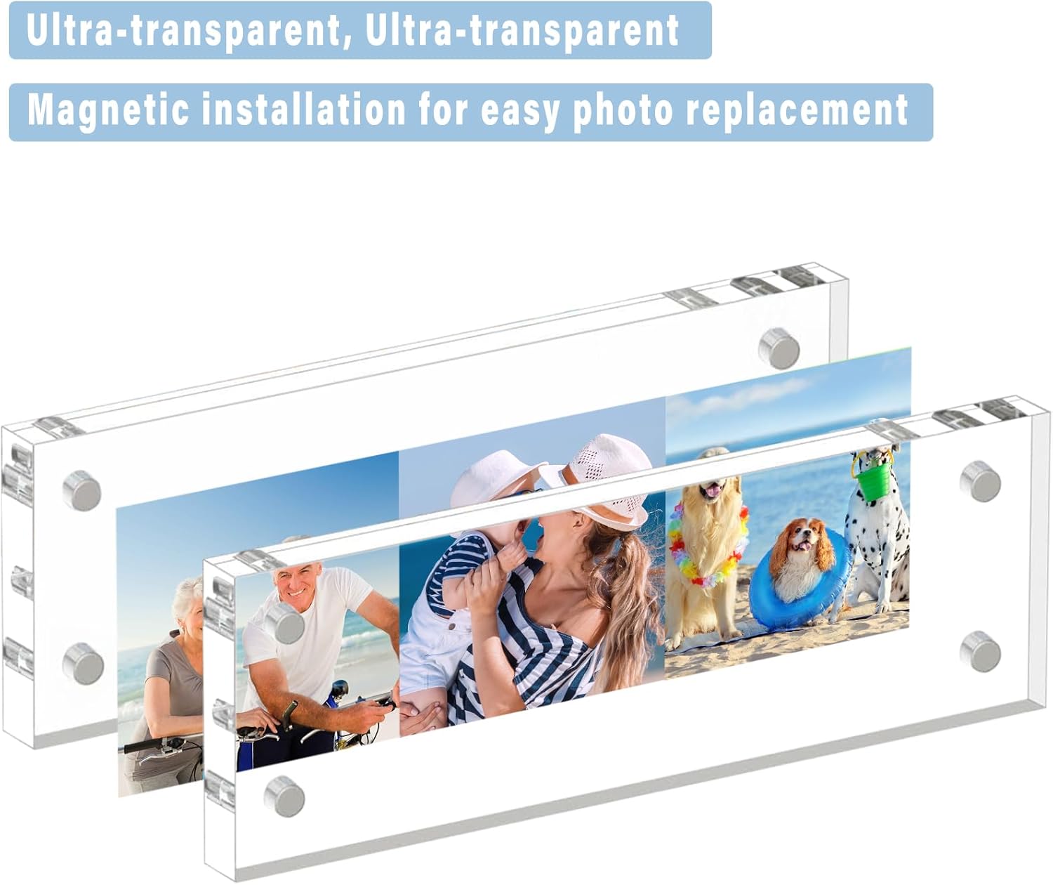 HELPLEX 3 Pack 2x6 Acrylic Picture Frames, 20mm Thicker Frameless Clear Double Sided Magnetic Frame, Free Standing Desktop Display Stand