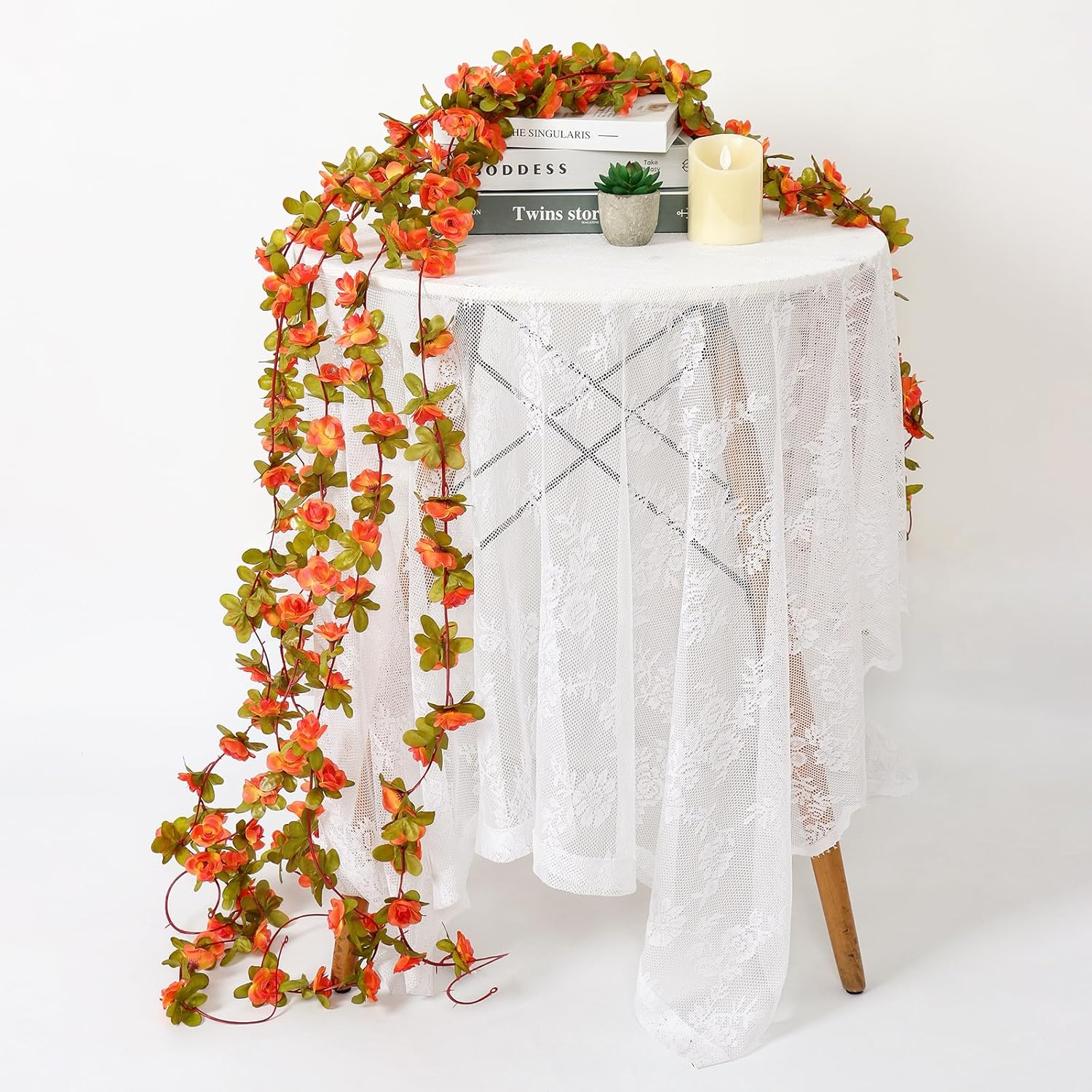 - 【Abundant Application】Orange rose garland decorations can create a romantic and fairytale atmosphere for your life. Suitable for many scenes such as Halloween, holiday partiy, autumn decor. It can be used to decorate dinner-table, gardens, fencing, sheds, swing frame, rattan chair, air-conditioning pipes, exposed wires, stairs, shop, restaurant, office, etc.