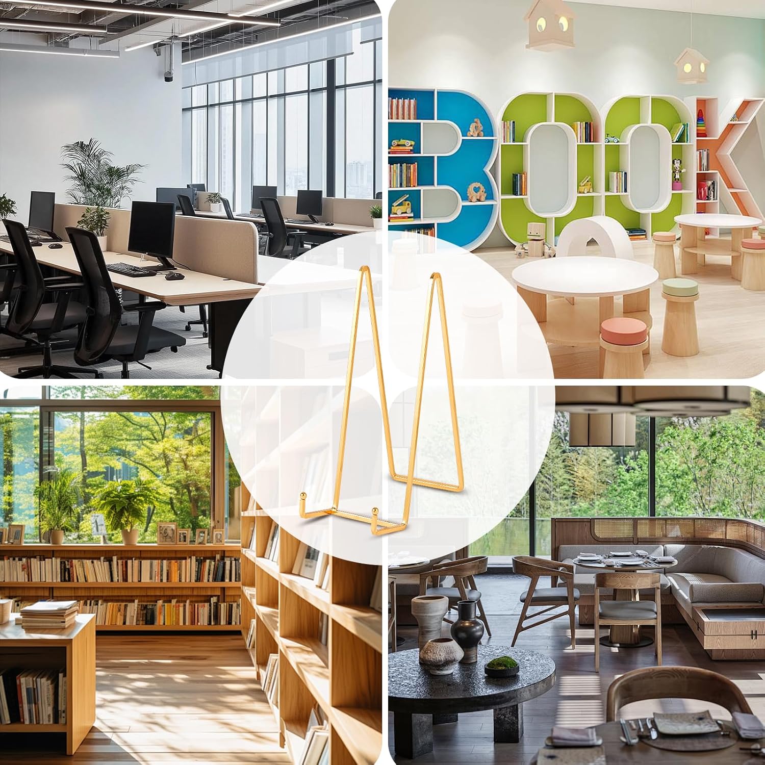 - More Usage Scenarios - Whether for home decoration or business display, this oversized frame holder stand will be your perfect choice. It works great for home, office, school, shopwindow, cafe, bookstore, wedding, showroom, gallary, museum, art exhibition or various theme party.