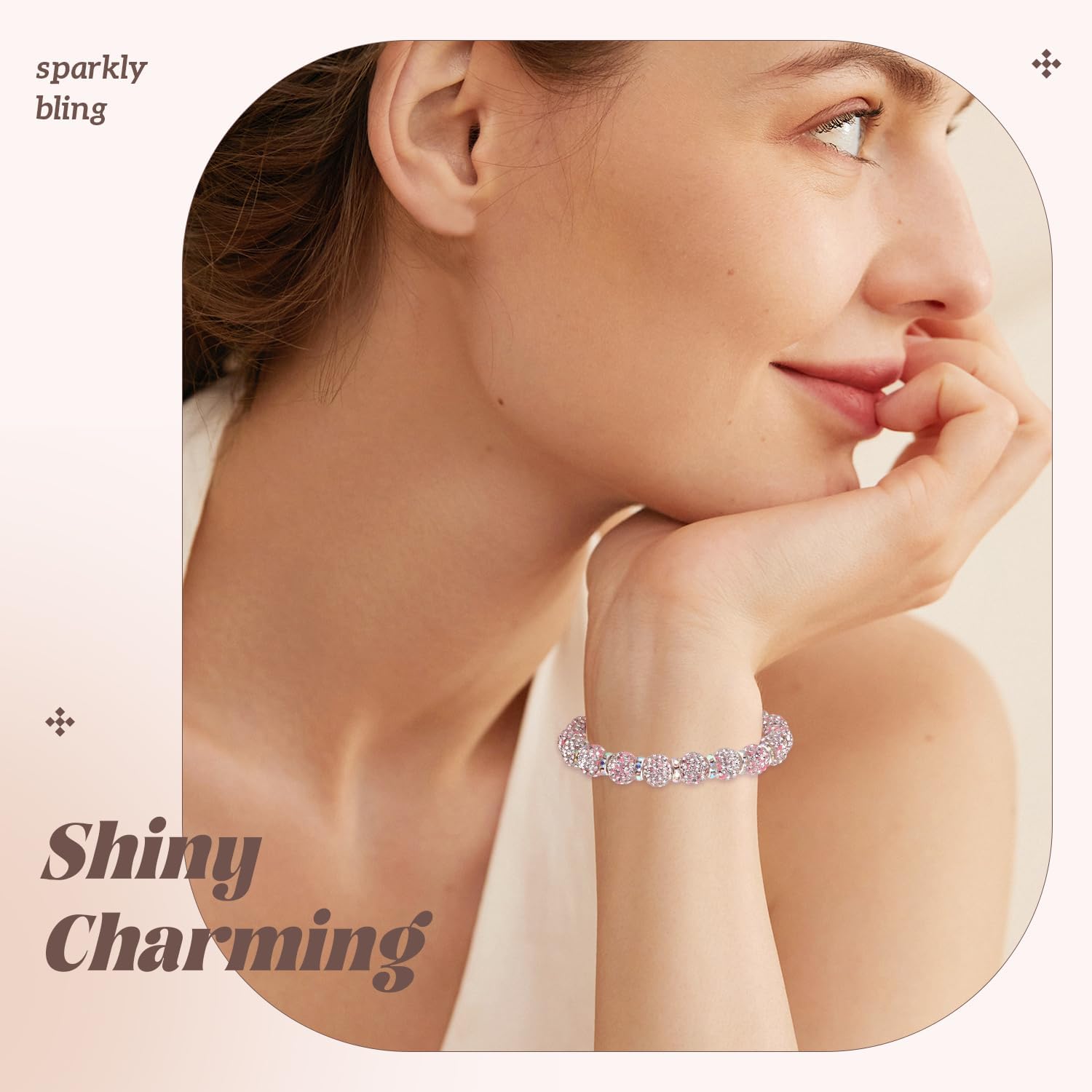 200pcs 10mm Rhinestone Beads for Jewelry Making, Pink White Shiny Round Disco Ball Beads Bulk, Sparkle Crystal Clay Christmas for Bracelet Baseball Necklace Earring Crafting and DIY