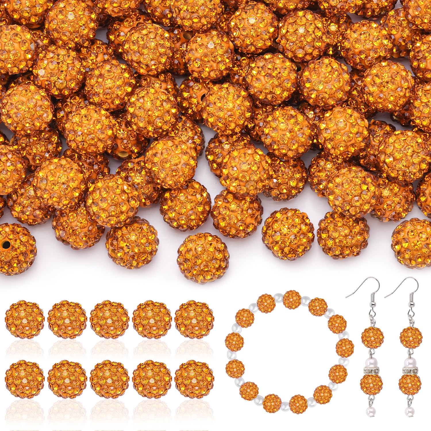 105pcs 10mm Rhinestone Beads for Jewelry Making, Golden Shiny Round Disco Ball Beads Bulk, Sparkle Crystal Clay Christmas for Bracelet Baseball Necklace Earring Crafting and DIY