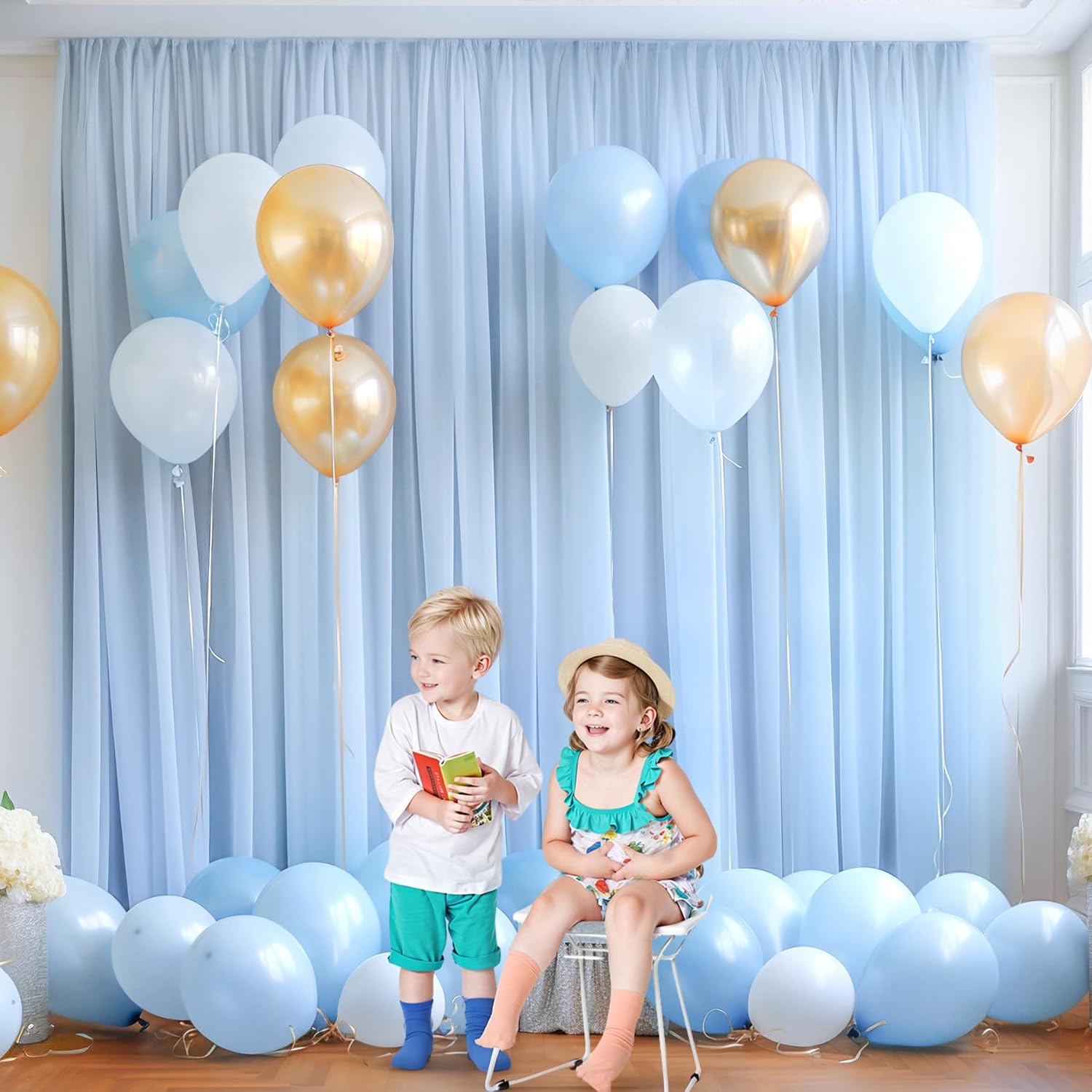 - 【Easy Care Sheer Backdrop Drapes】Our baby blue sheer backdrop curtain is easy to clean. You can wipe the surface with a damp cloth. It's best to hand wash with warm water or machine wash in gentle cycle with laundry bag,no bleach,lay flat or hang to dry.Can be used over and over again.
