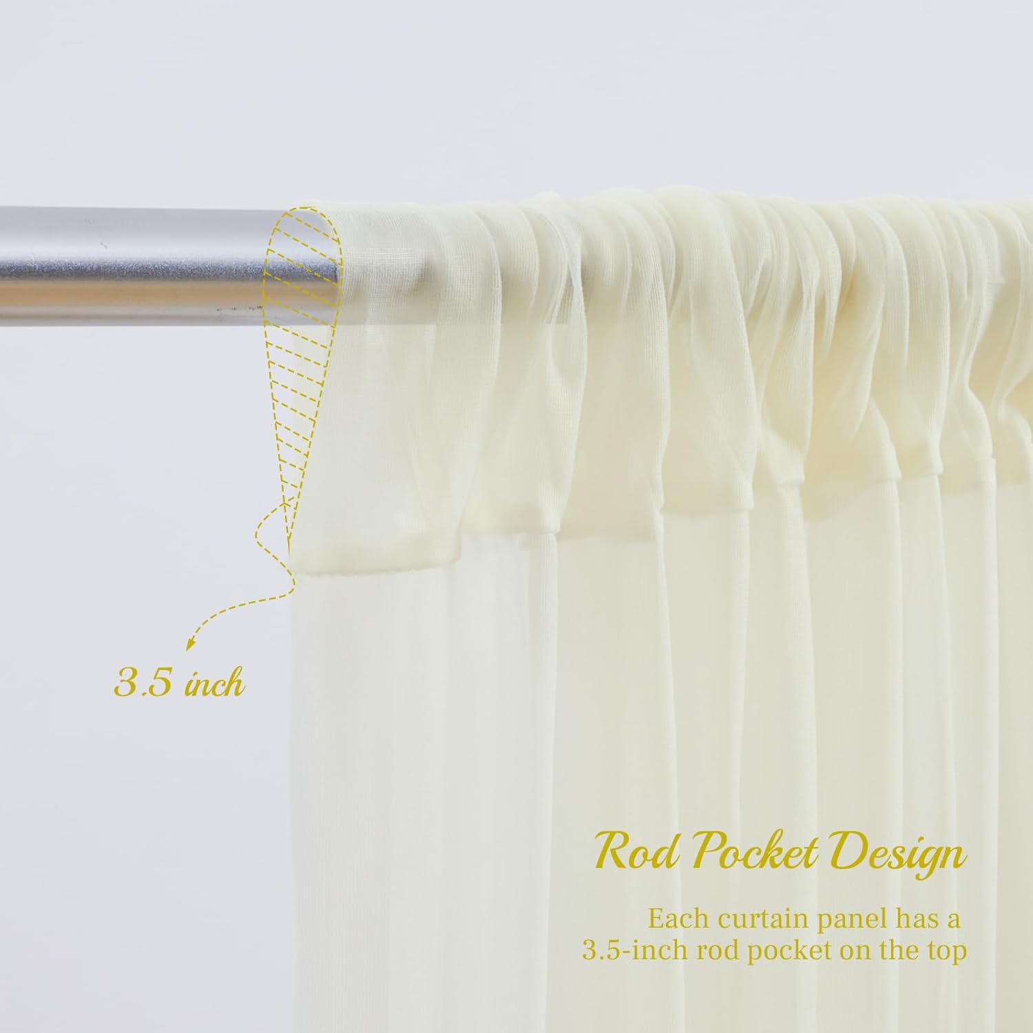- 【Easy Care Sheer Backdrop Drapes】Our ivory sheer backdrop curtain is easy to clean. You can wipe the surface with a damp cloth. It's best to hand wash with warm water or machine wash in gentle cycle with laundry bag,no bleach,lay flat or hang to dry.Can be used over and over again.