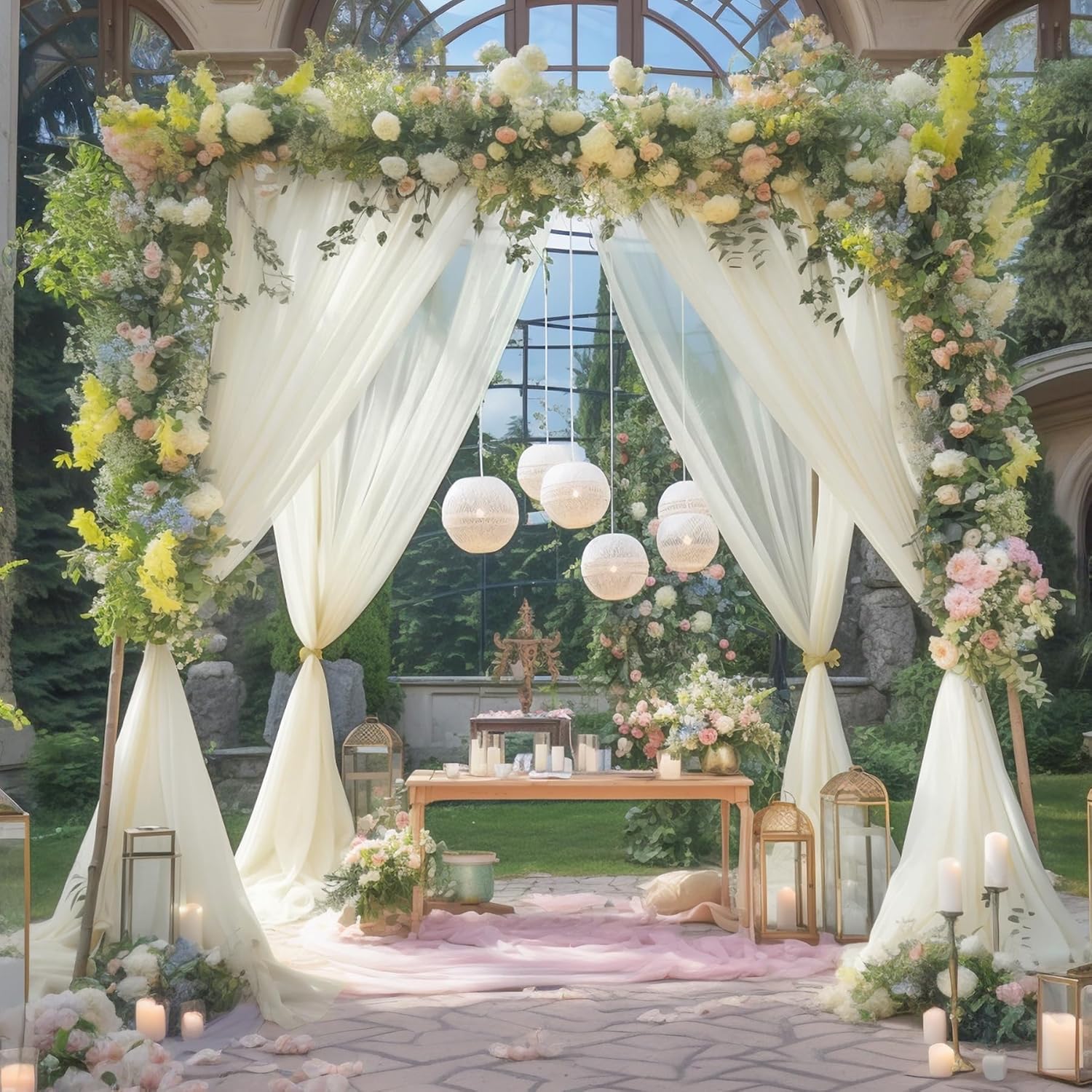 - 【Multiple Use Sheer Curtains】Our ivory drapes for backdrop are applicable for any indoor and outdoor occasions. Perfect for wedding arch draping fabric, wedding reception decorations, birthday party curtains, bridal and baby showers, birthdays, candy buffet curtain, dessert table background, trade shows, wedding stage photography, photo booths, ceremony and more.