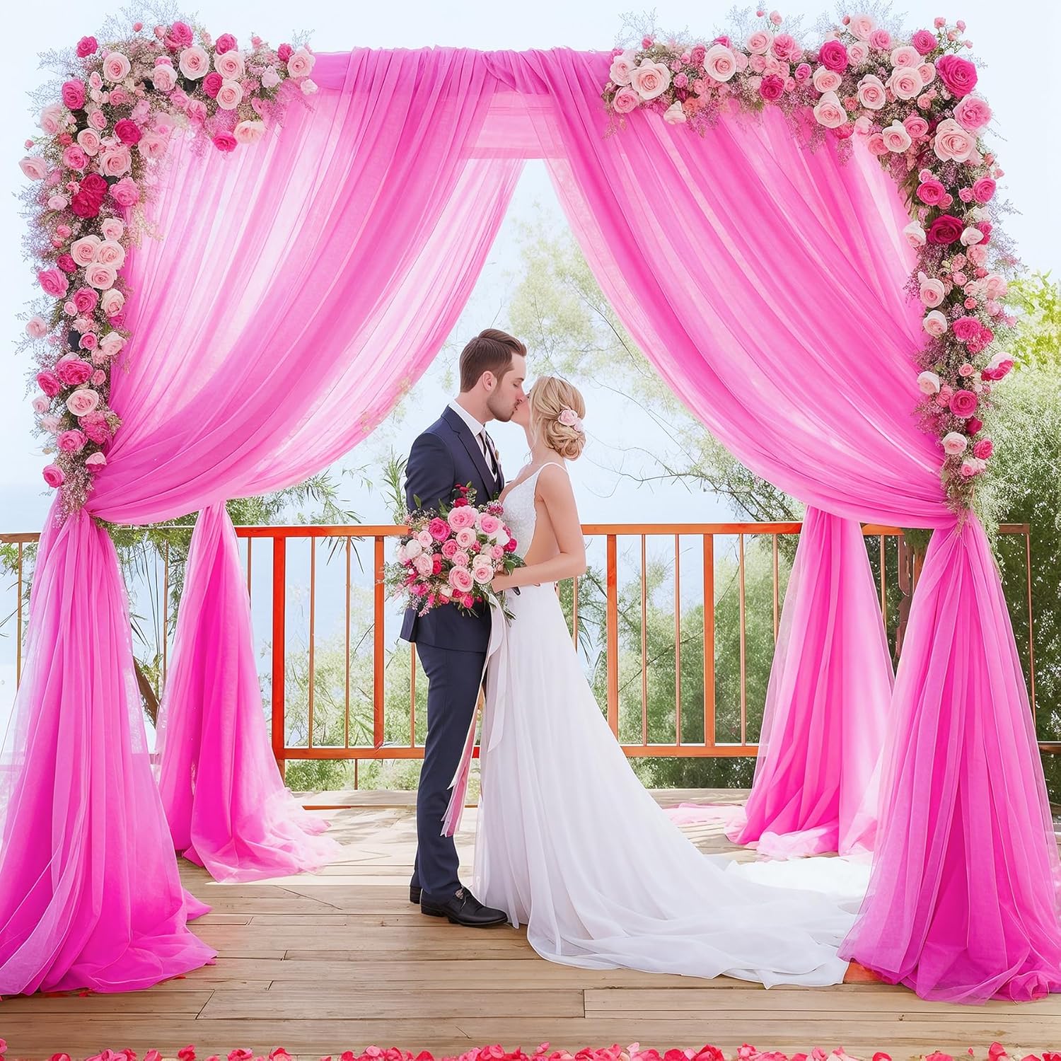 - 【Multiple Use Sheer Curtains】Our hot pink drapes for backdrop are applicable for any indoor and outdoor occasions. Perfect for wedding arch draping fabric, wedding reception decorations, birthday party curtains, bridal and baby showers, birthdays, candy buffet curtain, dessert table background, trade shows, wedding stage photography, photo booths, ceremony and more.