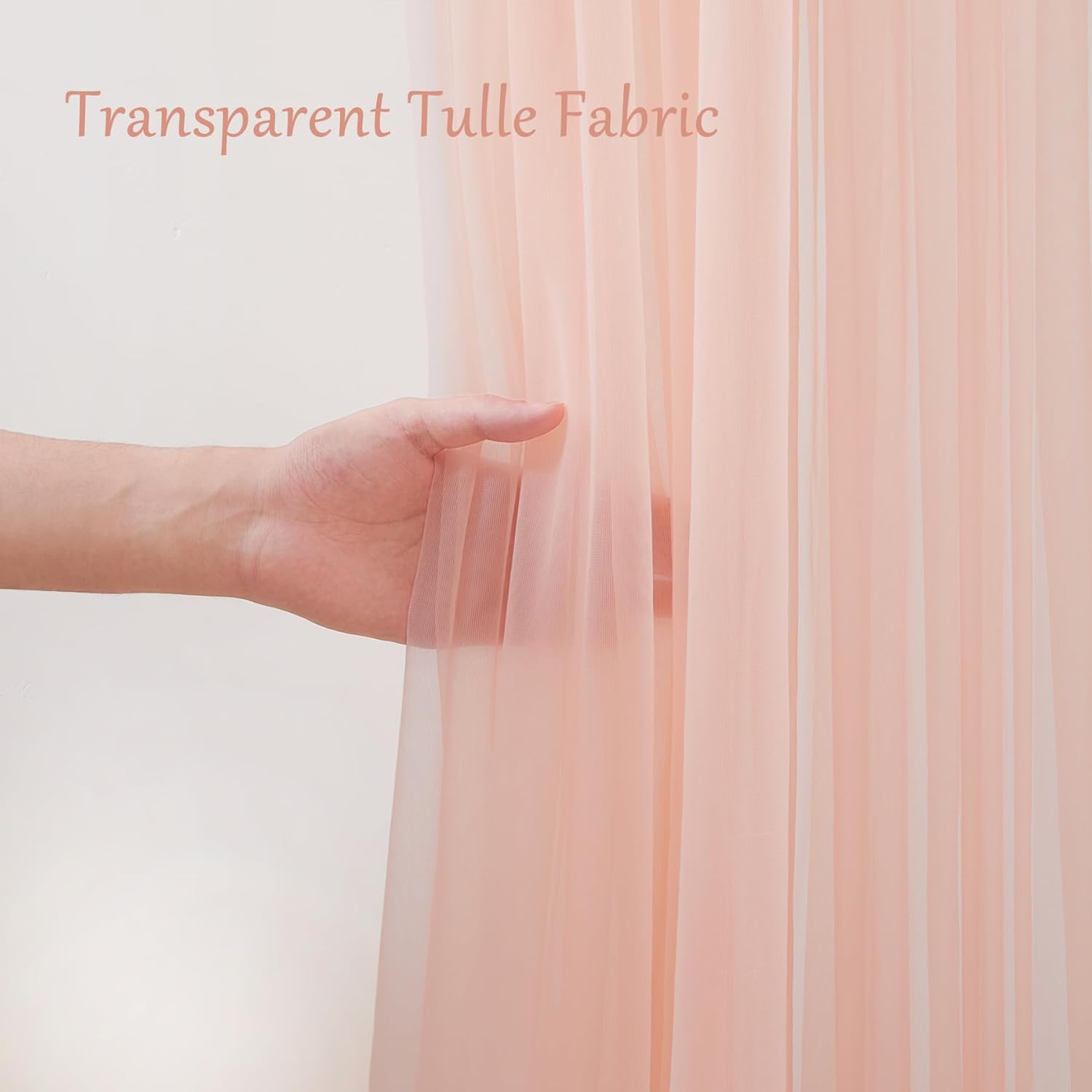 - 【Elegant Sheer Wedding Backdrop】Our peach sheer photo backdrop curtain is made of high quality delicate soft and smooth tulle. It's like a semi-sheer dress that flows in the breeze, so romantic. And it's also light to wear, the wind could blow it for a dramatic effect.