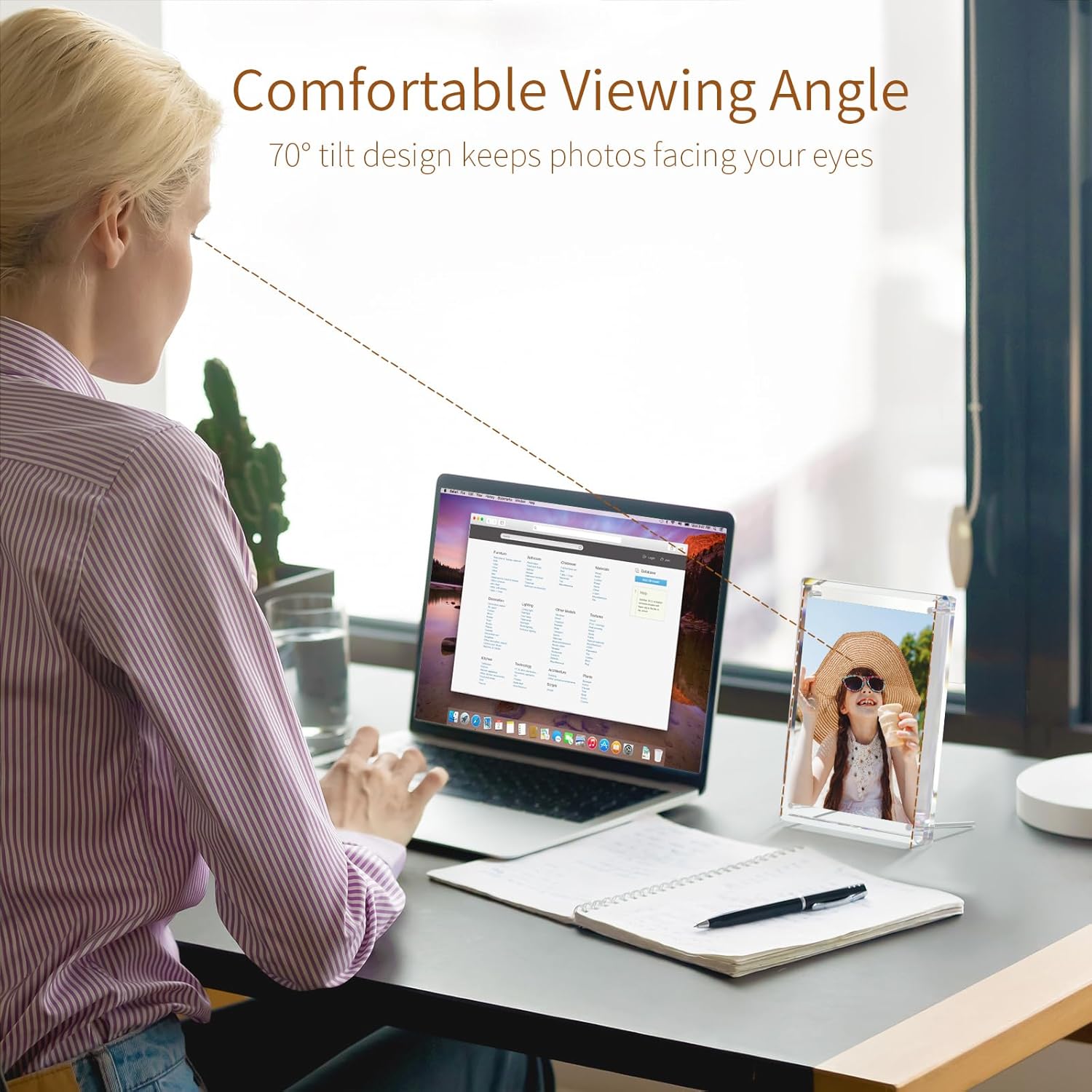 - Optimal Viewing Angle: Unlike traditional right-angle frames, the NIUBEE frame boasts a unique tilted design with a 75-degree angle, making it easy to view photos and ensuring they are seen in the best light and from the best perspective. Display your cherished memories at home, in the office, or anywhere you wish, for enhanced protection of your precious photos.